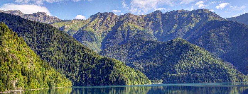 - Le lac de Ritsa est situé à 1000 km d'altitude sur le territoire de la réserve de Ritsinsky.