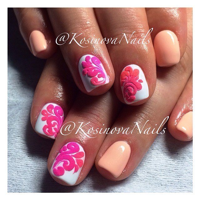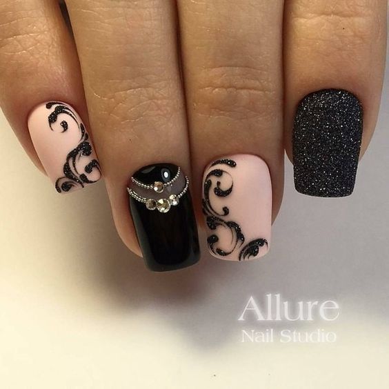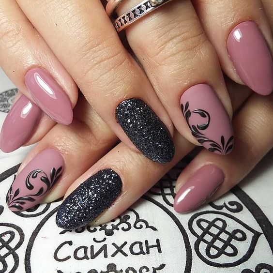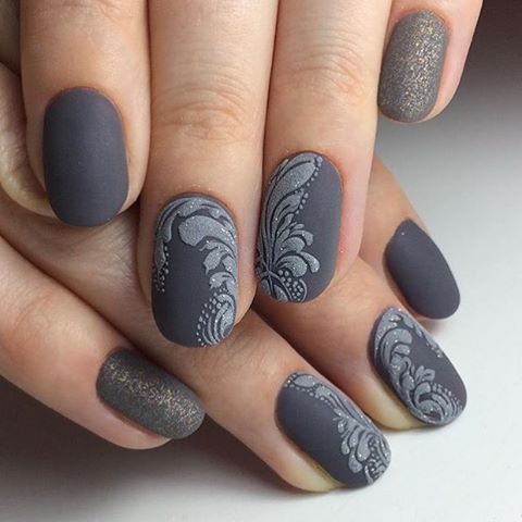 À partir du contraste d'une surface lisse et veloutée, des ornements exquis sont obtenus. L'une des variétés de revêtement de velours est considérée comme du sable décoratif et de la poudre de surface. En manucure, ce type est utilisé pour mettre en évidence une image ou l'un des ongles, car il semble plus dur que les villosités de velours. À l'aide d'un revêtement de velours, les manucures créent de véritables chefs-d'œuvre sur les ongles. Les motifs en velours sont très populaires chez les jeunes filles. Nous vous recommandons de choisir le dessin approprié pour la manucure en velours selon la photo ci-dessous.