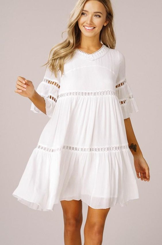 Pour la vie de tous les jours, choisissez des robes faites de tissus naturels. Ils sont particulièrement agréables au corps et ne gênent pas le mouvement. De plus, le blanc souligne toujours la qualité du tissu. Par conséquent, il vaut la peine de ne choisir que des choses de qualité. La coupe doit être droite, lâche ou ajustée. Ces produits seront aussi confortables que possible. En outre, vous pouvez facilement créer une variété d’images.