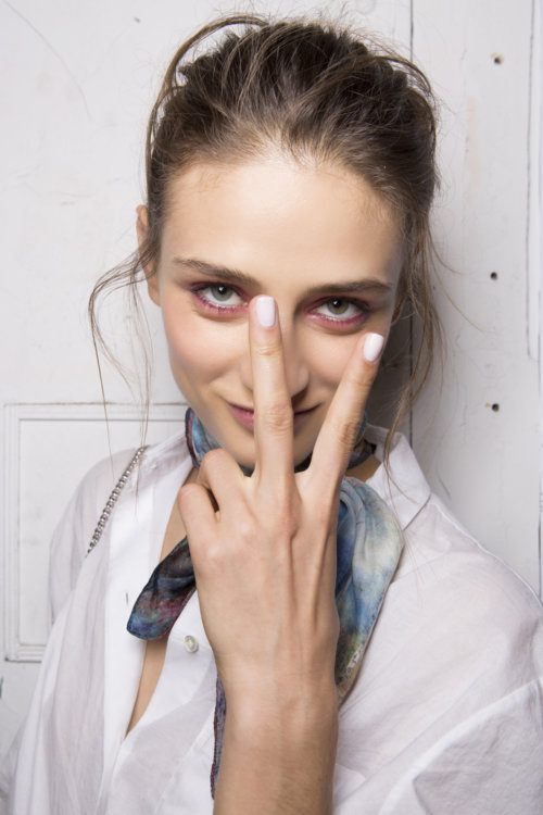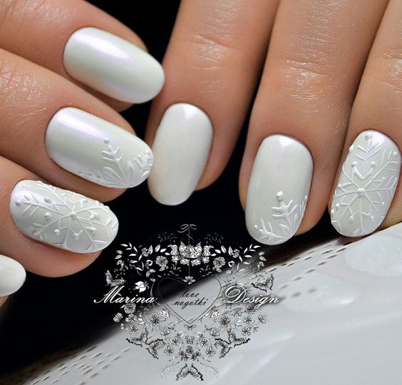 La couleur blanche délicate du vernis est considérée par beaucoup comme universelle, car elle s’harmonise parfaitement avec tout vêtement, quelle que soit la saison. Des expériences avec du vernis blanc peuvent être effectuées à l'infini: tout y est associé. Un motif blanc comme neige peut être ombré en appliquant une teinte d'un autre vernis sur plusieurs ongles, de préférence non crier, mais dans une couleur pastel.