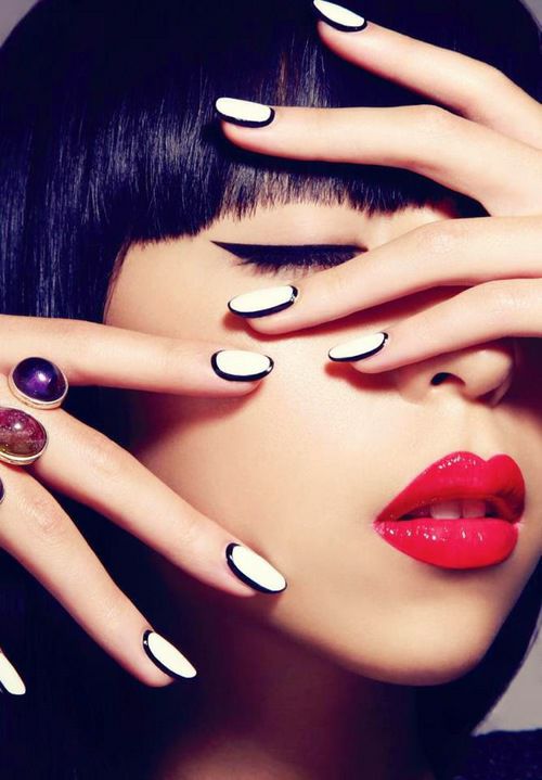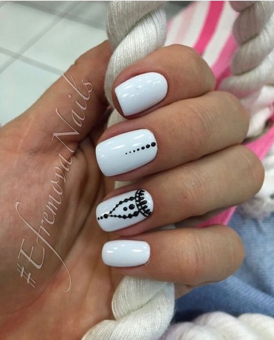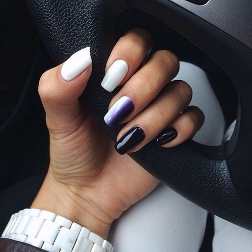 Les stylistes offrent cette saison la combinaison habituelle, mais plutôt inhabituelle, du blanc et du noir. Il existe de nombreuses options exceptionnellement belles pour le nail art noir et blanc, dans lesquelles ces deux couleurs sont combinées dans une manucure parfaite et inimitable. Bien sûr, avec cette conception, le blanc prédomine et le noir ne fait que souligner la beauté et la splendeur de l’art à ongles élégant. L'option avec un échiquier ou des puzzles en noir et blanc convient aux ongles longs. Lorsque vous choisissez une impression géométrique, considérez que cela change visuellement la forme de l'ongle.
