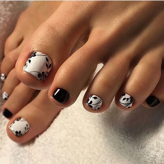 Pédicure à la mode avec des motifs floraux et floraux