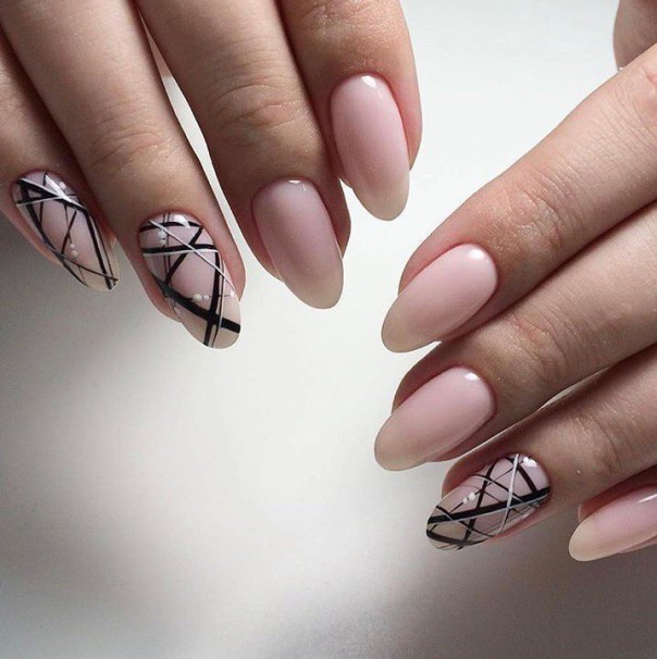Lorsque vous ajoutez des motifs subtils et élégants en blanc ou un beau motif, vous pouvez créer une manucure très attrayante. En le complétant avec des éléments décoratifs sous forme de strass, vous pouvez obtenir une option de fête charmante qui conviendra à la tenue la plus diverse.