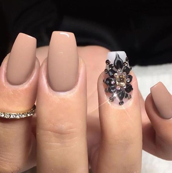Une manucure dans un ton beige aura l’air frais si vous y ajoutez divers détails. La tendance en matière de design est un décor métallique, une manucure élégante avec des confettis et des étincelles. Si vous souhaitez diversifier le design, une bonne option serait de mettre un motif élégant de strass sur un ou plusieurs ongles. En ce qui concerne la combinaison de couleurs lors de l'exécution d'un ornement sur une plaque à ongles, leur choix est vaste. Le ton beige se marie élégamment avec des nuances vibrantes. La manucure à base beige peut être combinée avec du bleu, du rouge et du vert. Vous pouvez également représenter une image en argent, or, ton marron. Une combinaison plus élégante de beige avec turquoise. Cette version estivale est douce et provocante.