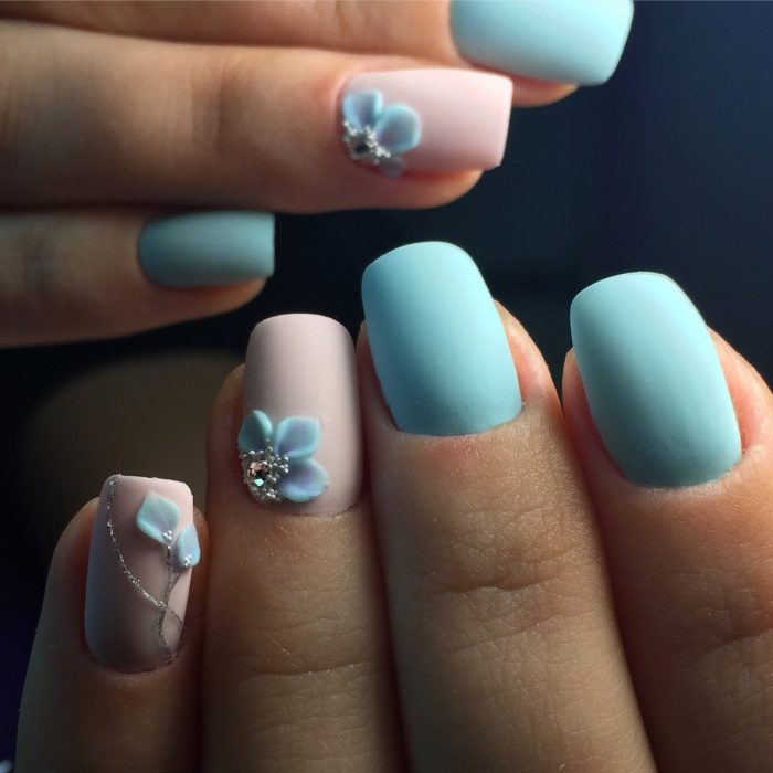 La manucure mate est une option assez à la mode. Il est couramment utilisé pour les ongles courts. Ce type de nail art a un look romantique et ajoute une tendresse particulière à votre style. La teinte beige de la texture mate est idéale pour la base de différents motifs. Il peut être combiné avec de la poudre acrylique et un frottement.