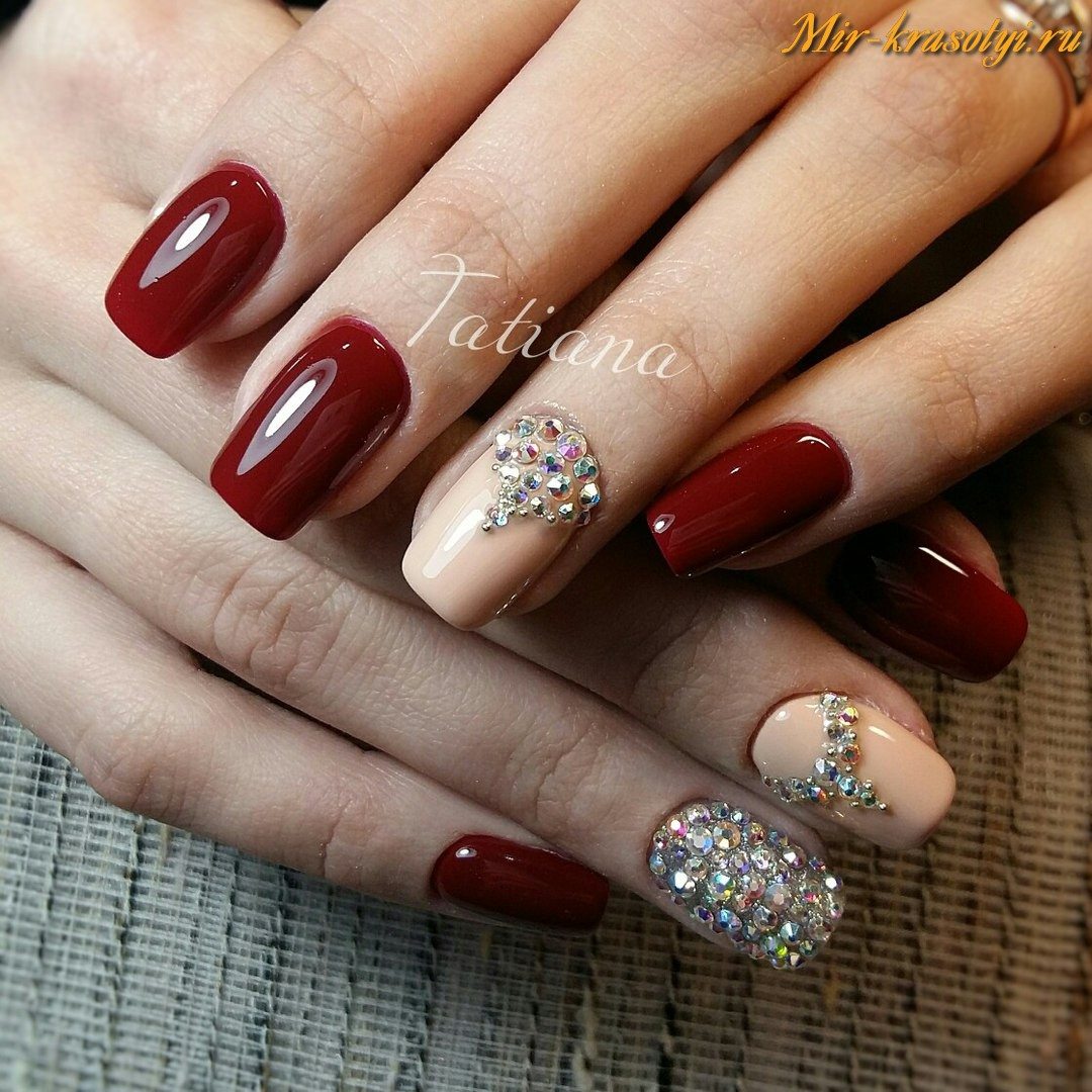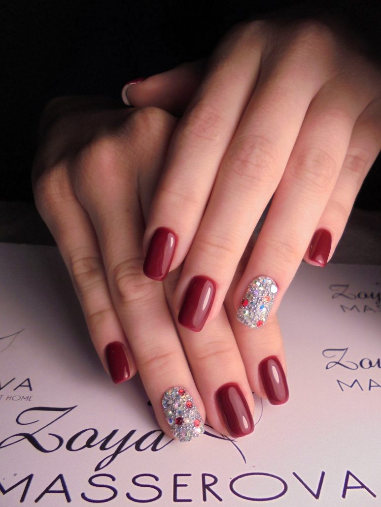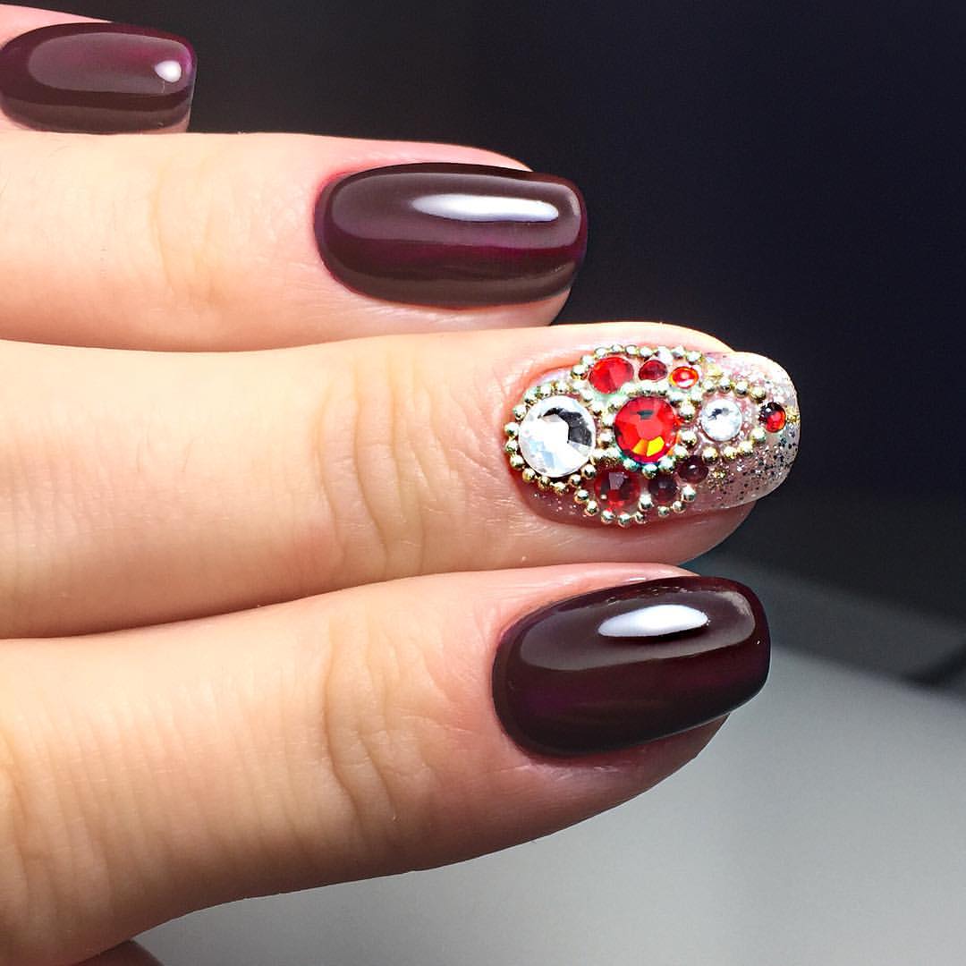 Certains pensent que l'utilisation de strass dans la création de manucure a déjà perdu de sa pertinence. Mais les concepteurs sont pressés de prouver le contraire sur l'exemple de la manucure bourgogne.