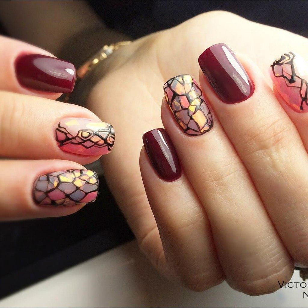 Même si nous parlons d'une couleur aussi saturée que le bordeaux, vous ne devriez pas avoir peur des expériences qui l'utilisent dans le nail art. La bonne combinaison avec d'autres teintes et décors créera une manucure élégante et lumineuse qui ne passera pas inaperçue.