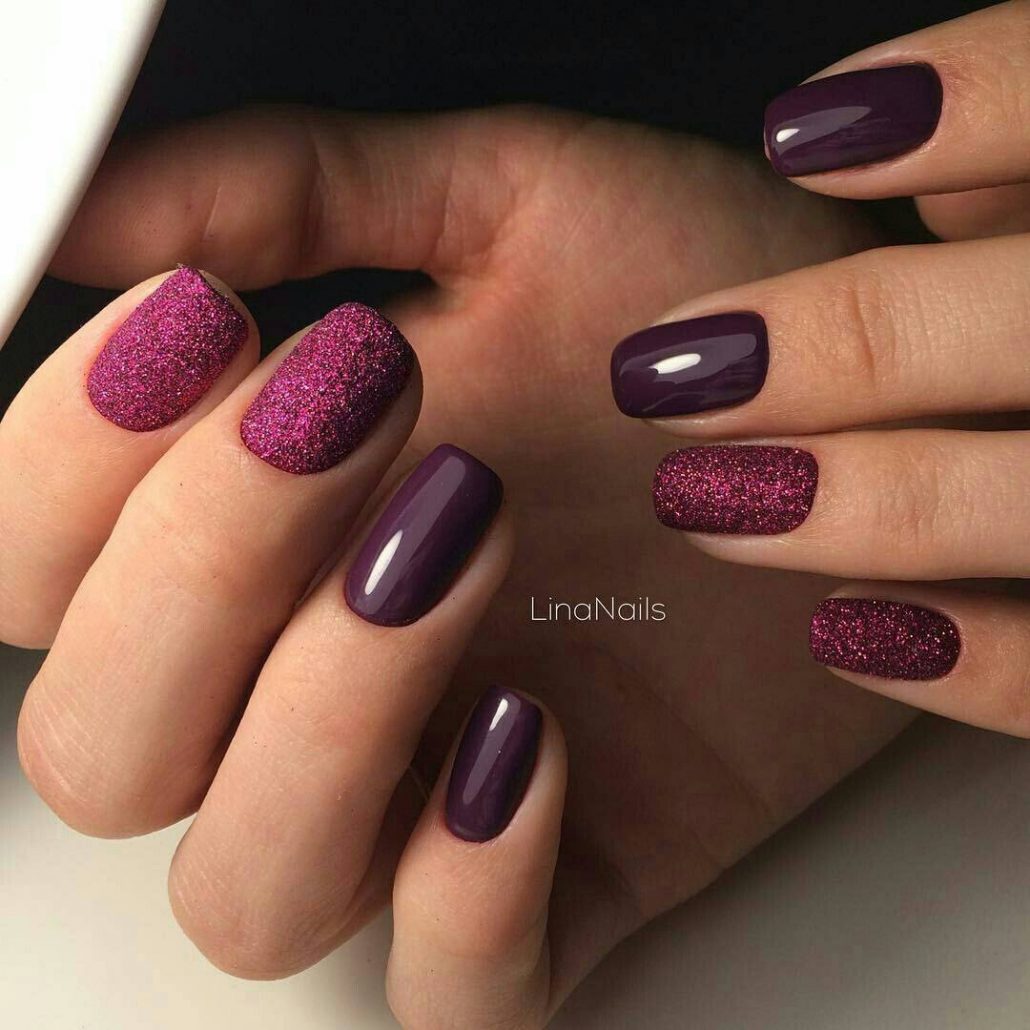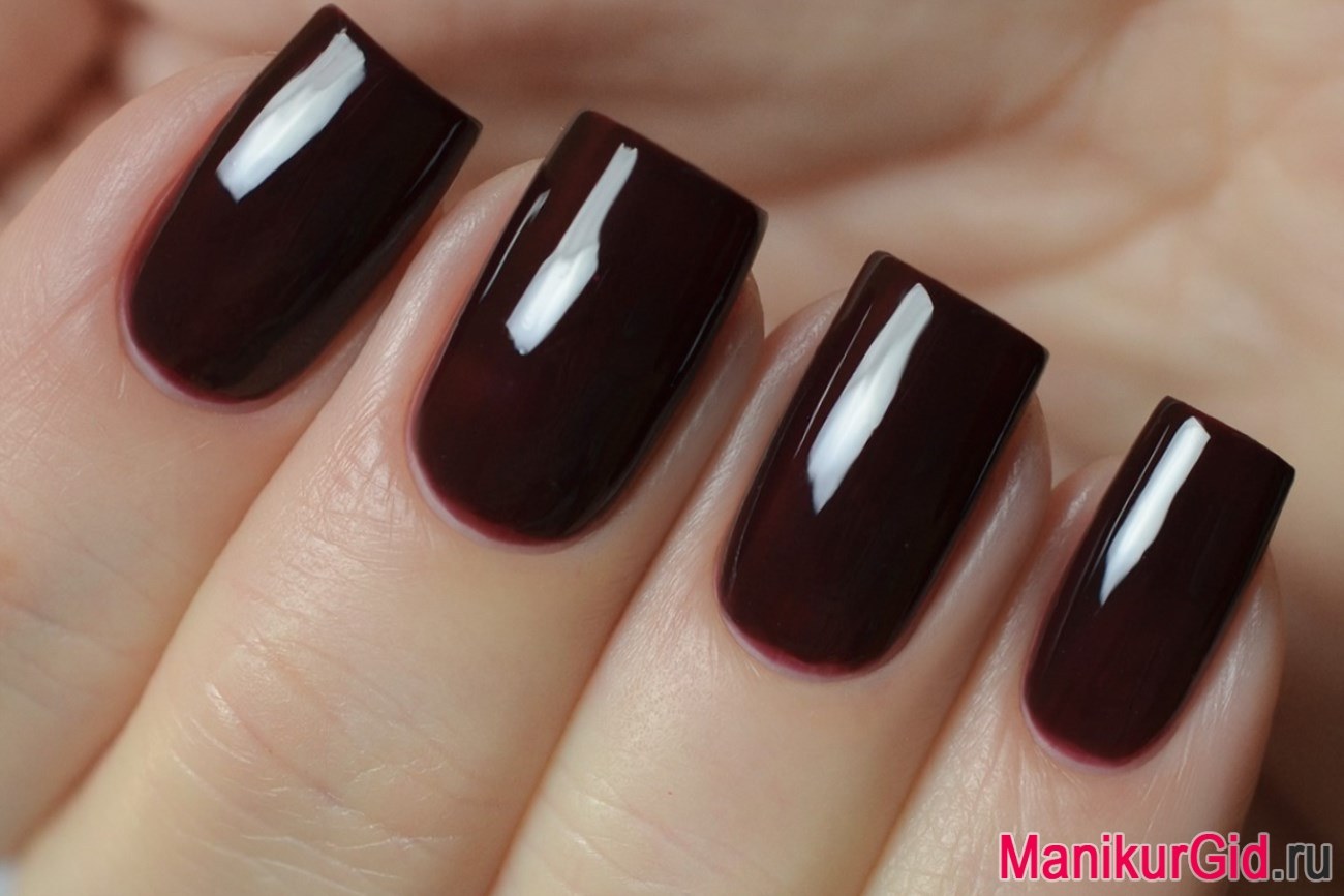 La Bourgogne est souvent utilisée dans les dessins français et lunaires. Il semble attrayant dans une manucure à gradient, avec vernis noir. Cependant, le revêtement monochrome dans cette nuance n'est pas moins populaire.