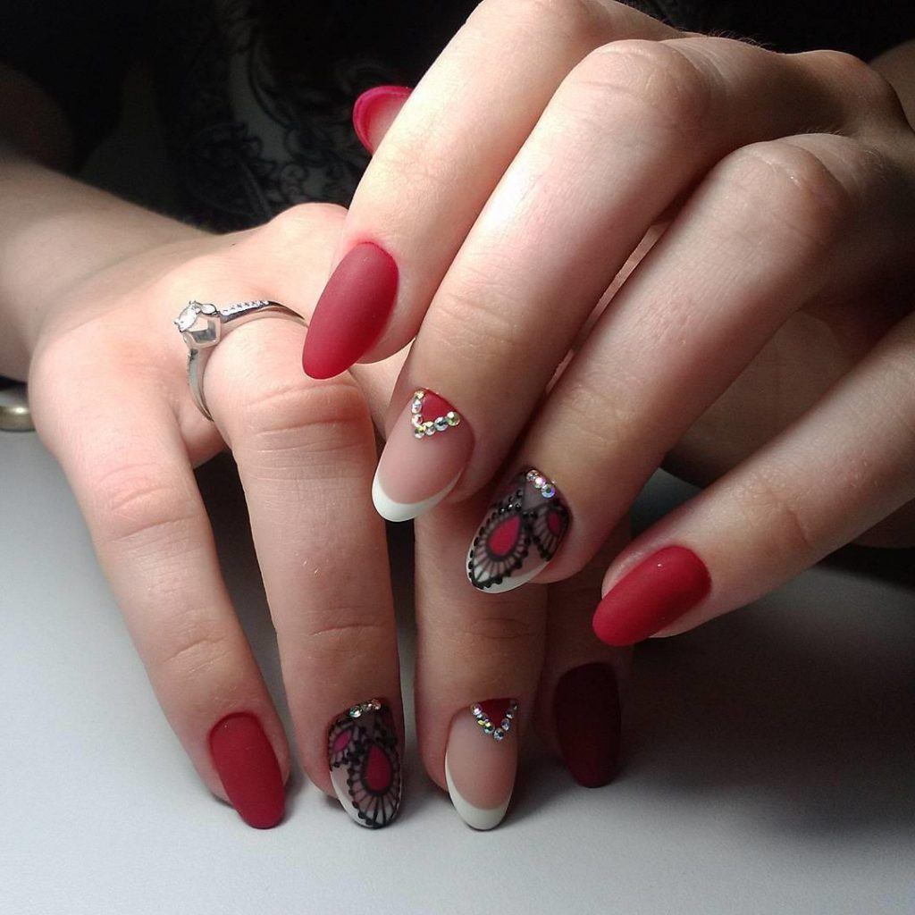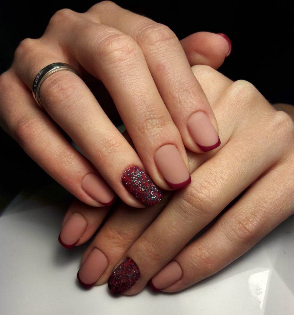 Le vernis Bourgogne peut présenter une saturation des couleurs différente, être brillant ou mat. La manucure mate paraîtra plus impressionnante sur les ongles longs, car ce n’est que dans ce cas que vous pourrez maximiser la profondeur de la couleur.