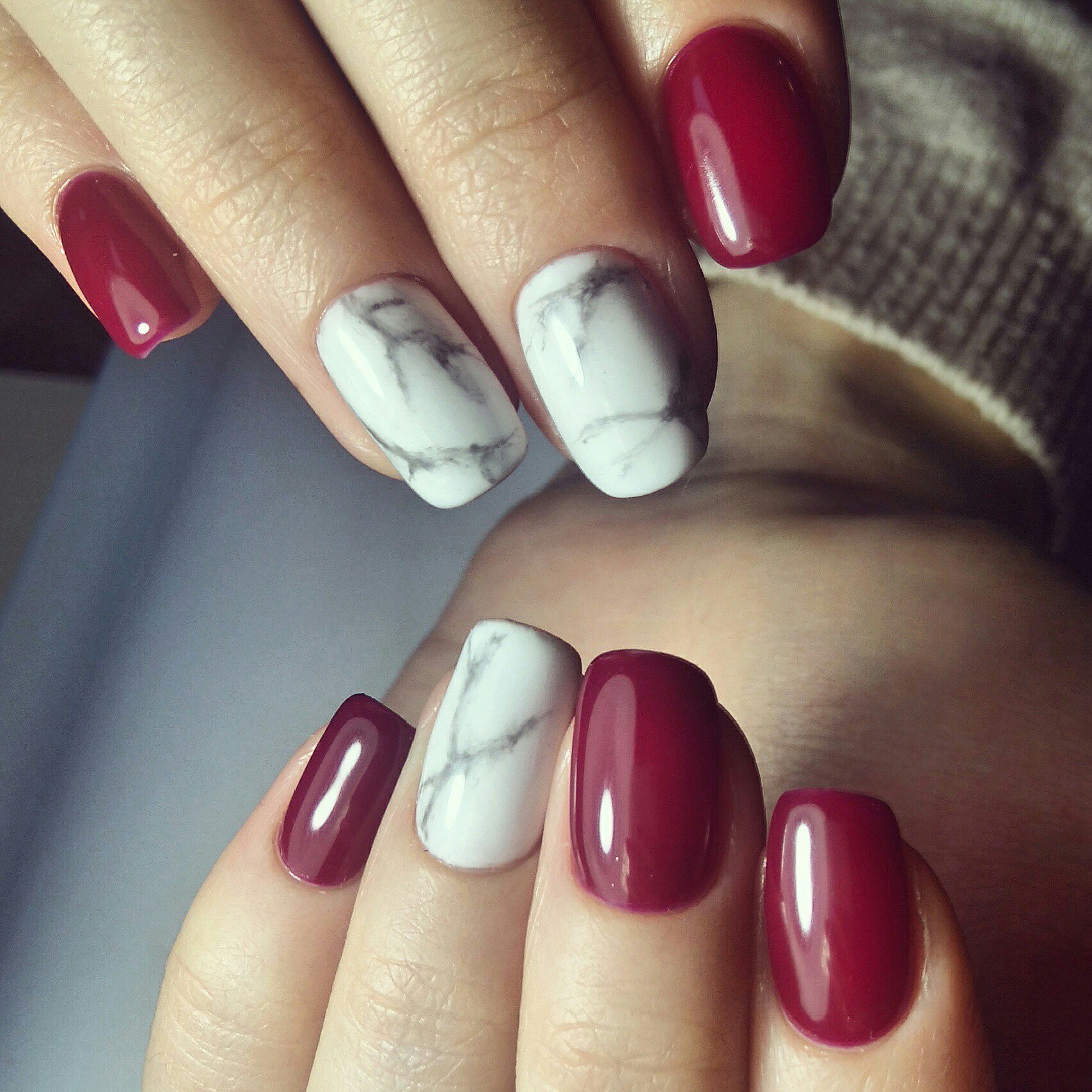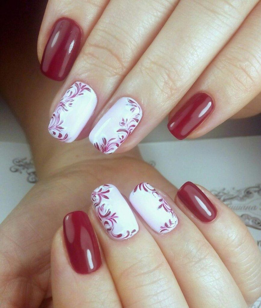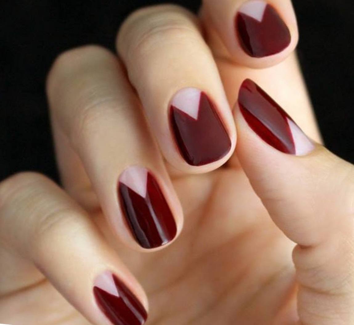 Ceux qui veulent une manucure plus légère peuvent combiner le bordeaux avec le beige, le rose ou tout autre choix parmi une palette de pastel.