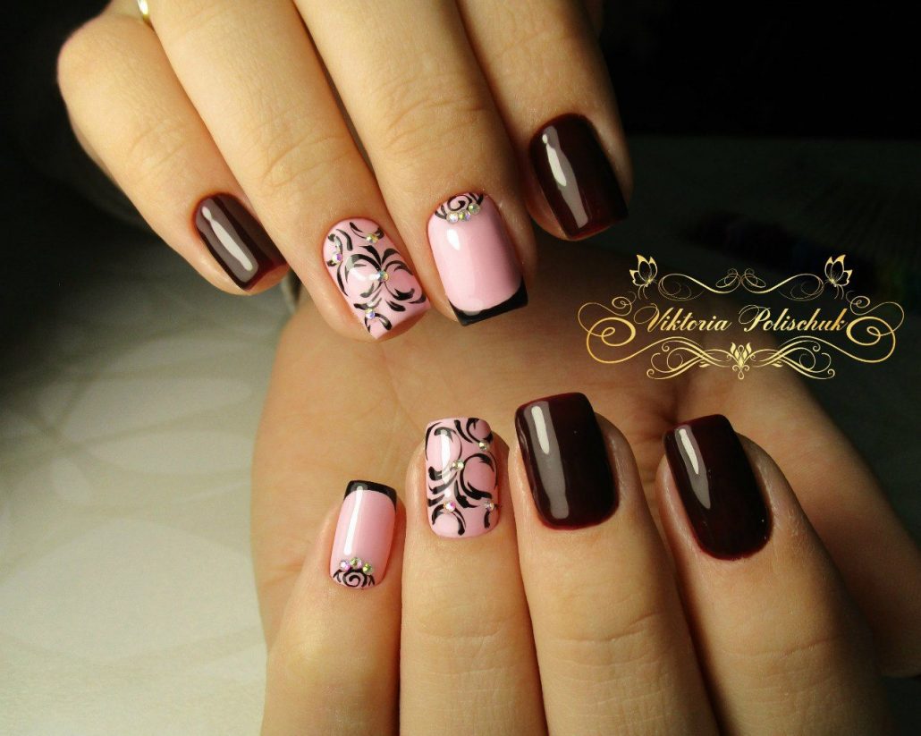 Et le rose apportera tendresse et romance à la manucure. En combinaison avec le bordeaux, il paraîtra encore plus doux.