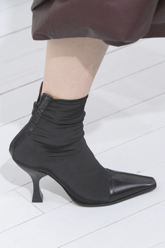 J'aimerais beaucoup attirer votre attention sur le fait que le printemps des bottes 2026 est très fidèle à la forme en pointe de nez. La jambe féminine dans des bottes avec une cape pointue se sent confortable et pratique. À la fin des années 80 et au début des années 90, les chaussures à pointes ont fait fureur. Il est très important de choisir les bons vêtements pour les chaussures pointues, car la perception de l'image dépend de l'ensemble. Le fait de la mode pour les chaussures pointues ne signifie pas que chaque femme doit acheter une nouveauté moderne. Des bottes pointues dangereuses peuvent rendre une femme plus grosse, plus basse et s’agit d’un personnage ridicule.