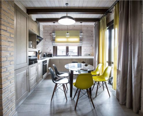 Il est très pratique de placer des casques dans le coin cuisine. Leurs surfaces dans cet arrangement sont situées sur deux ou trois côtés.
