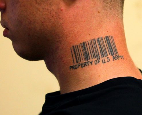 Code-barres de tatouage: signification, esquisses, options masculines et féminines sur la photo