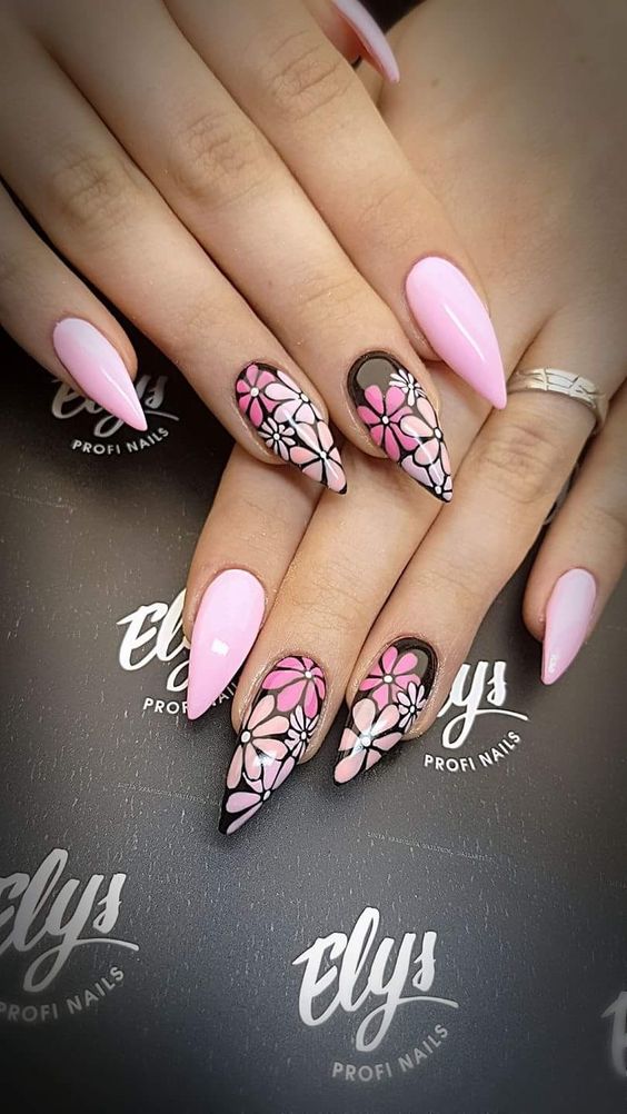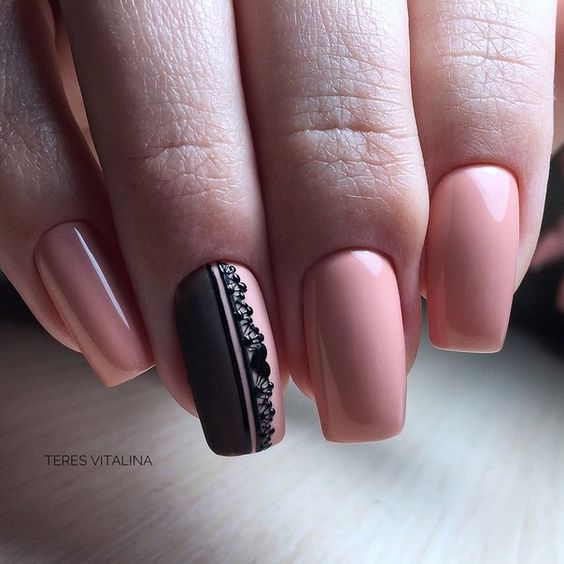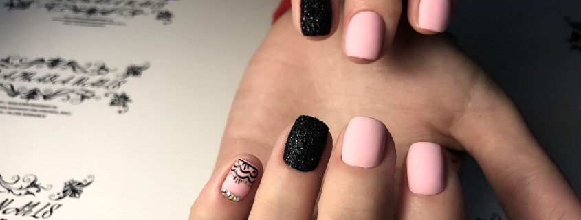 Des nuances de vernis rose qui s'harmonisent avec le noir