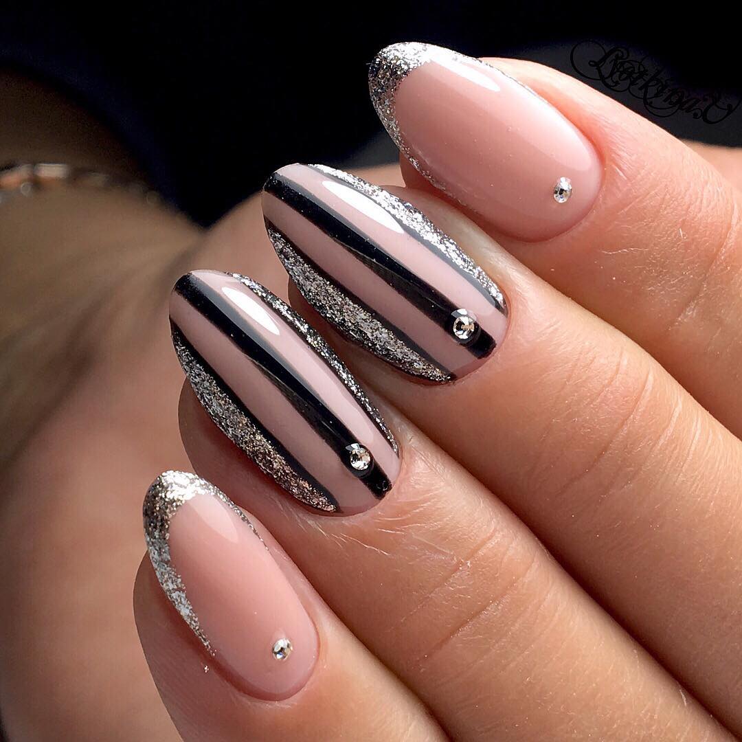 - Belle manucure avec l'ajout d'étincelles. S'intègre parfaitement dans l'image festive, ajoute du luxe et du chic.