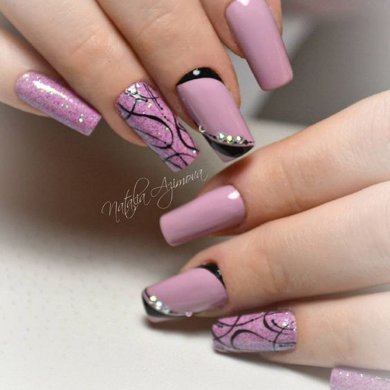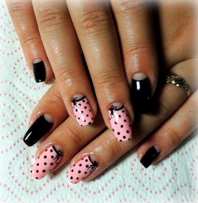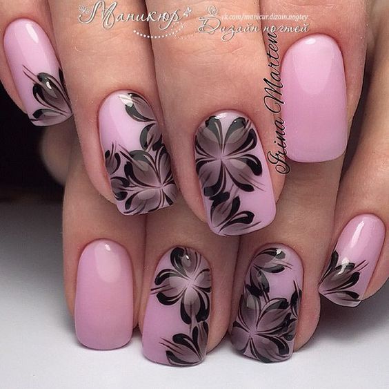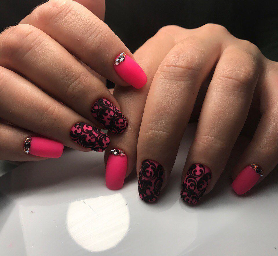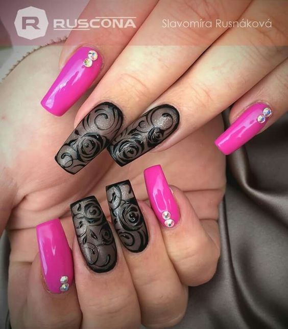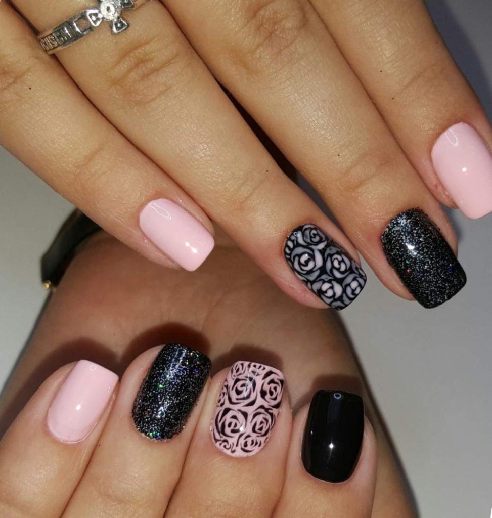 Manucure noire et rose: exemples éclatants de beaux nail art