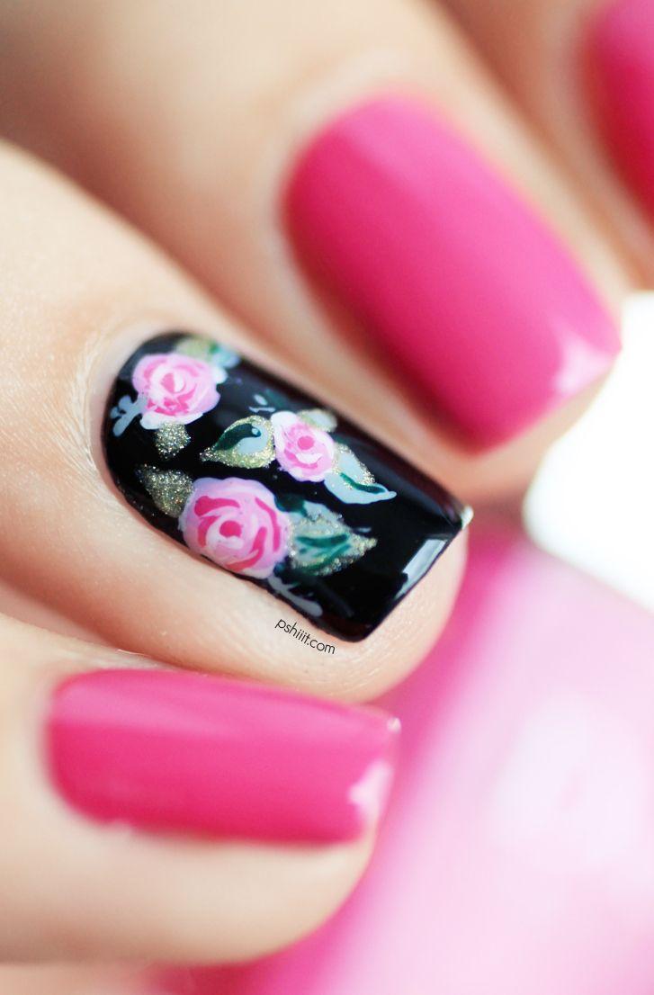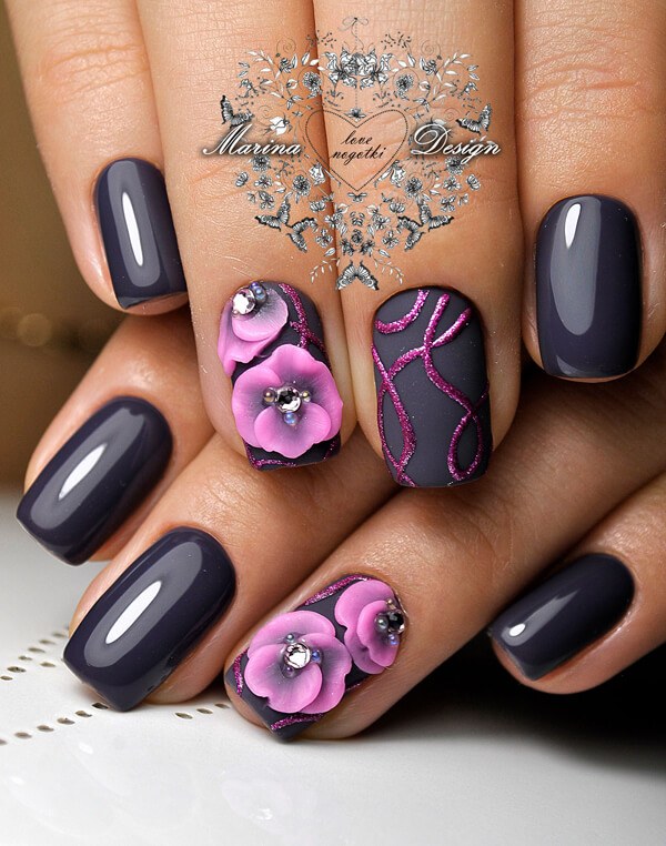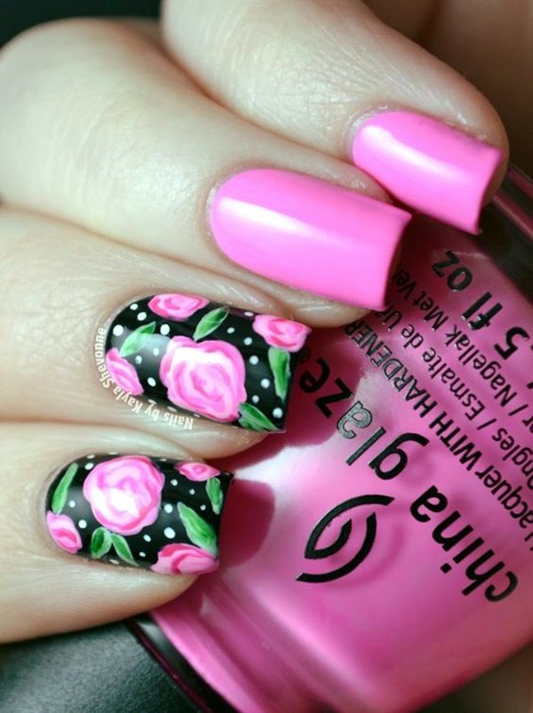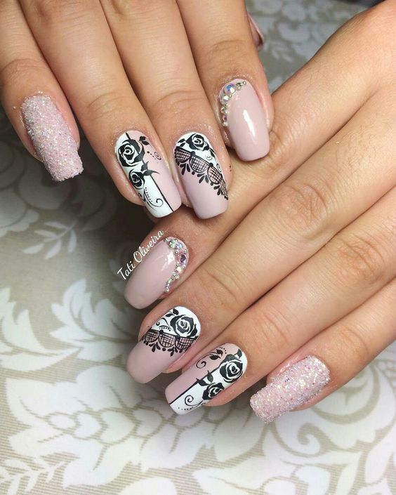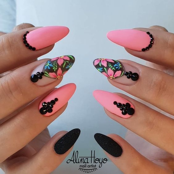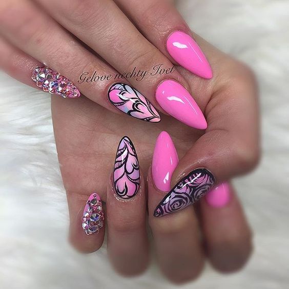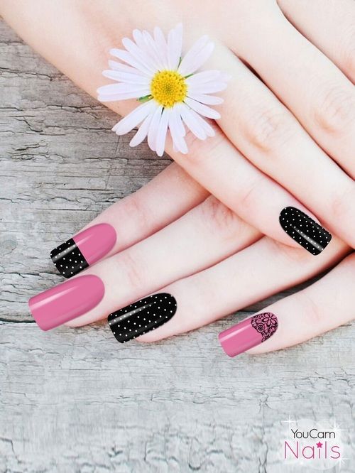 Manucure noire et rose: exemples éclatants de beaux nail art
