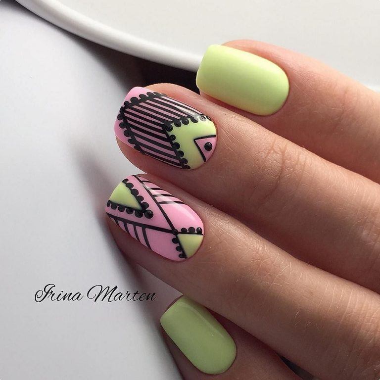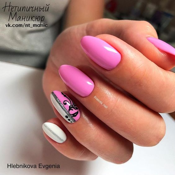 Le plus souvent, ces couleurs conviennent aux personnes passionnées, motivées et fortes. Par exemple, des motifs lumineux sur les ongles peuvent refléter la polyvalence. La couleur rose acide convient aux filles «venteuses» qui aiment s'amuser et rire de la gloire. Pour les femmes plus âgées, une manucure rose simple avec une veste foncée convient. Les adolescents seront ravis avec la couleur rose terne, qui peut être décorée avec une ligne de dentelle noire. Une femme d'affaires devrait apprécier une manucure rose pâle avec l'ajout d'une bordure noire.