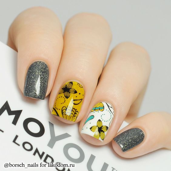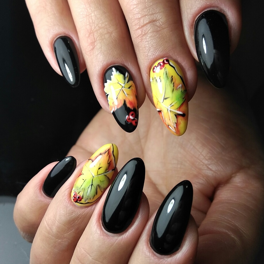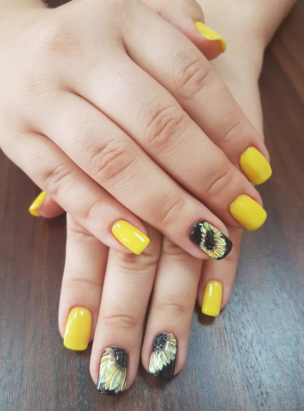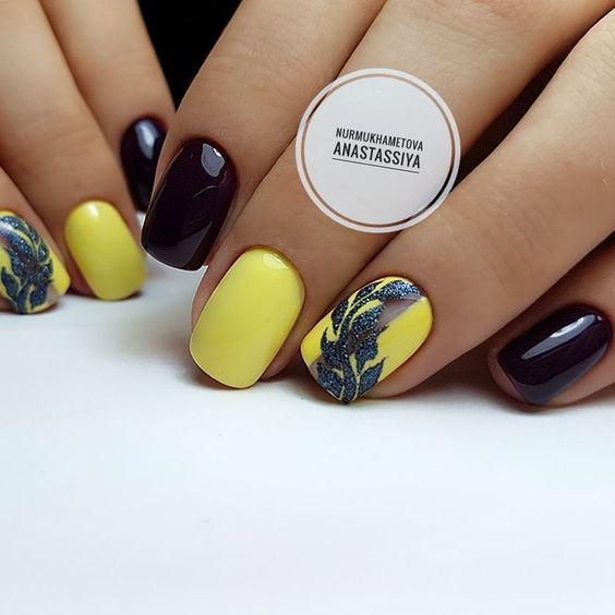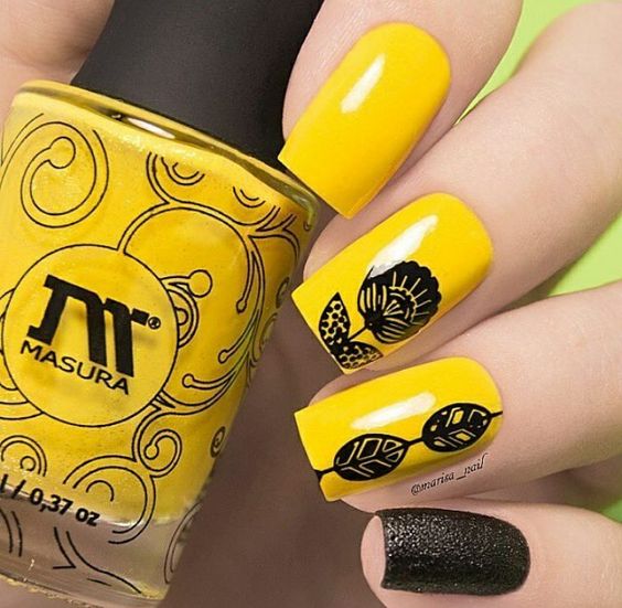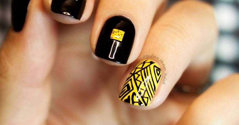 Les meilleures idées de manucure avec vernis noir en duo avec des tons jaunes