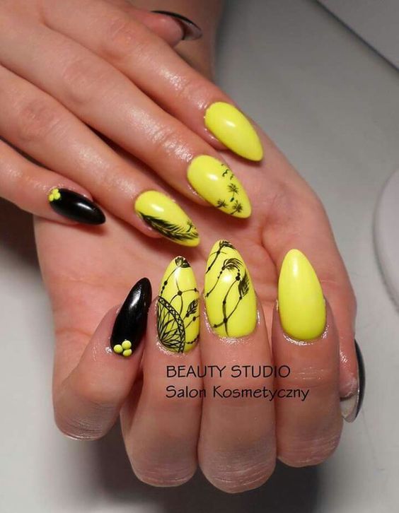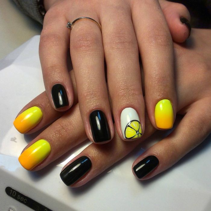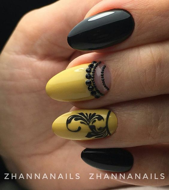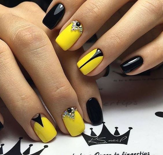Manucure noire et jaune: 100 meilleures idées et nouveautés en matière de design