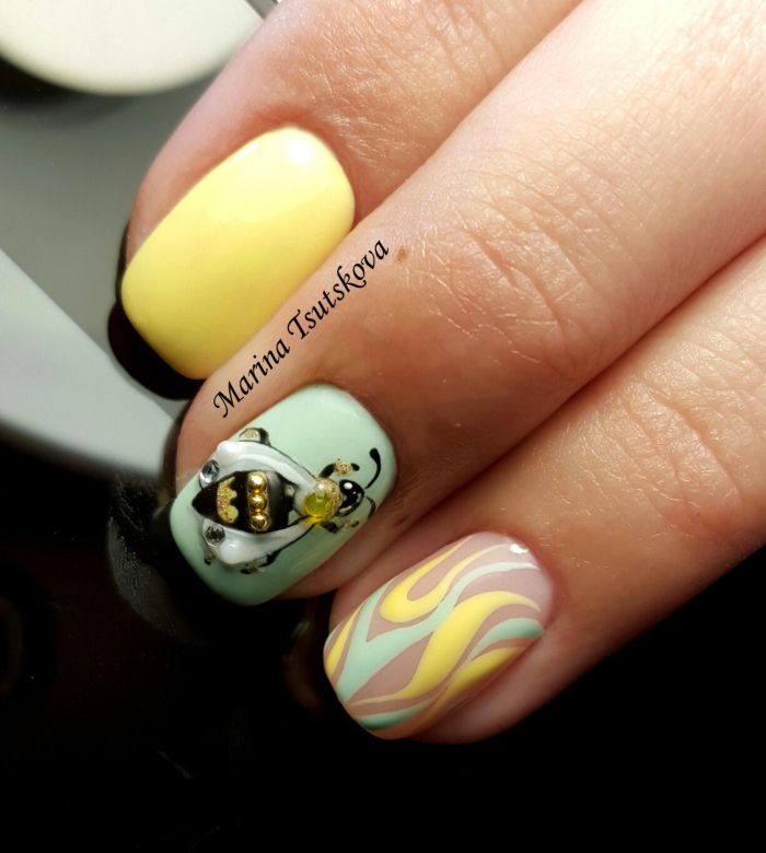 Il est important de savoir que lors du choix d’une manucure noire et jaune, sa luminosité et sa saturation dépendent de la nuance du vernis jaune lui-même. Plus la couleur jaune est colorée, plus la manucure elle-même sera extravagante et étonnante. En choisissant une couleur riche et brillante de vernis gel, de couleur jaune vif, vous attirerez ainsi les regards des autres. Vous voulez obtenir une manucure quotidienne, puis essayez la couleur jaune dans des couleurs calmes, même neutres.