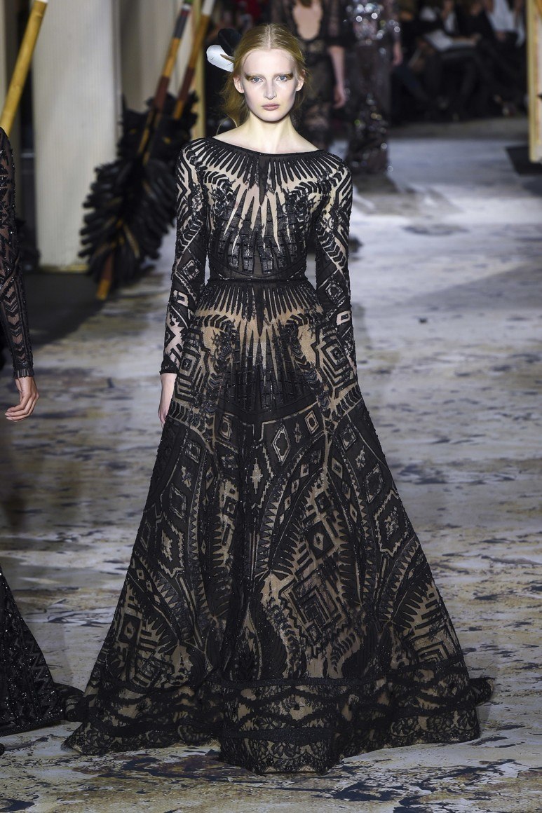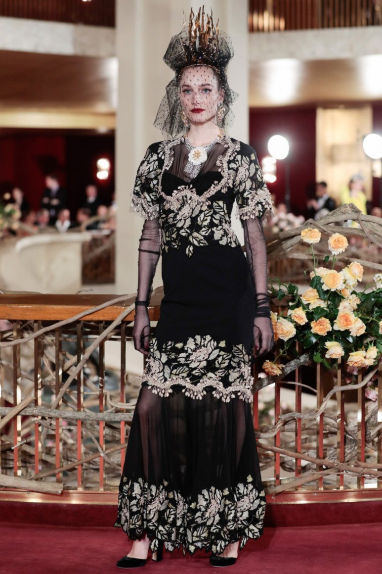 Robe longue en dentelle noire: des motifs voyants