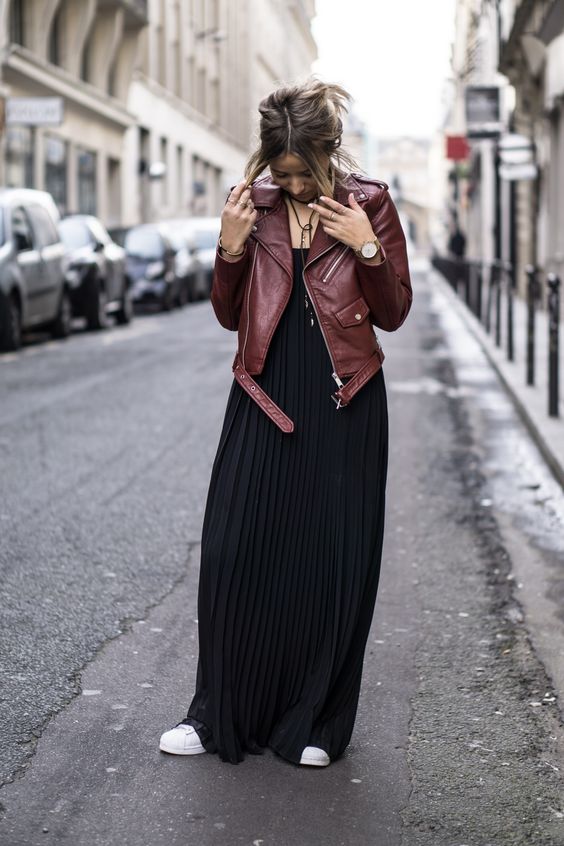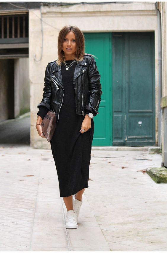 Contrairement à la croyance populaire, une longue robe noire ne doit pas forcément être le soir. Bien entendu, ces options ont un aspect luxueux et se combinent parfaitement avec des chaussures élégantes et des accessoires laconiques.Mais si votre garde-robe est un produit quotidien assez simple posé au sol, il est préférable de sélectionner les éléments appropriés de l'image. Par exemple, si vous portez une robe avec une veste en jean, des baskets et un sac à dos, l'image sera plus urbaine. C'est idéal pour la vie quotidienne, marcher avec des amis, aller au cinéma.