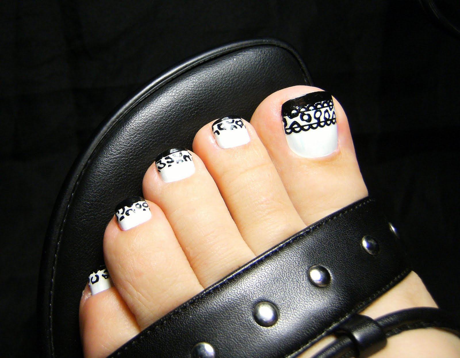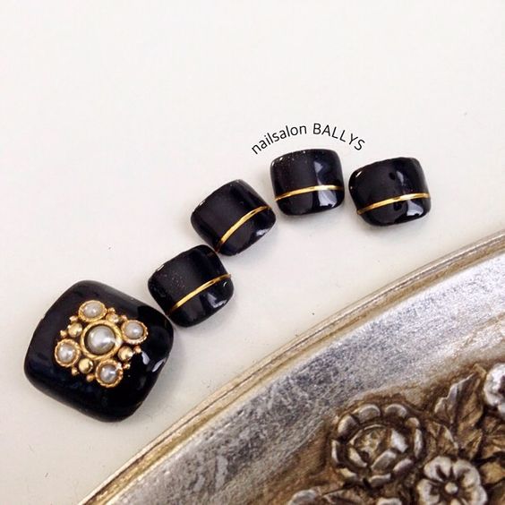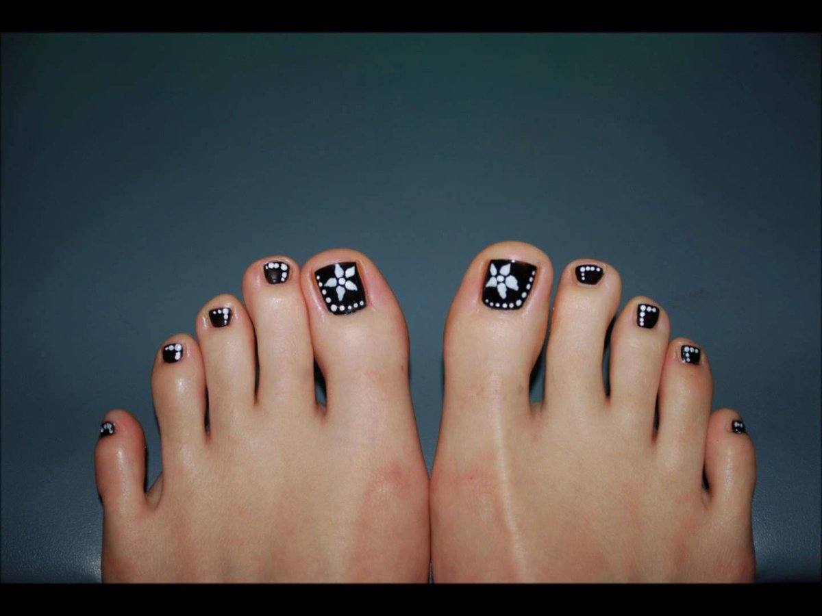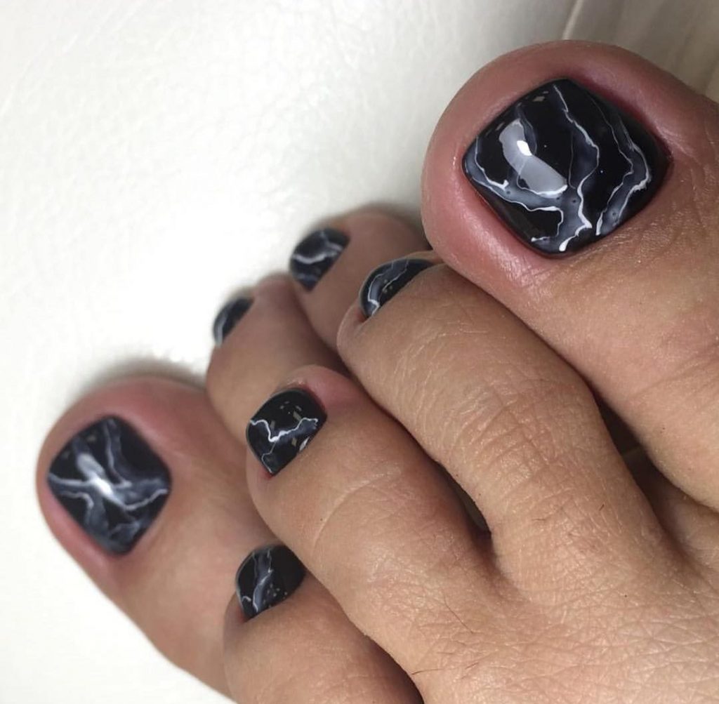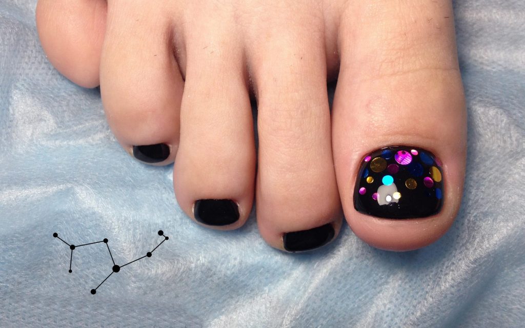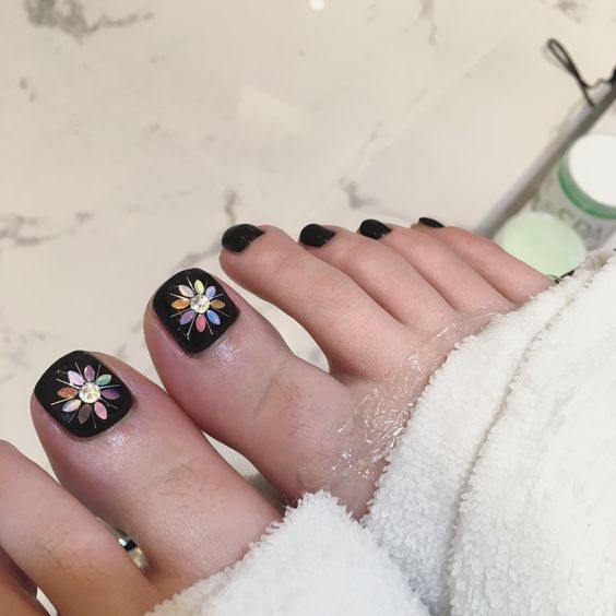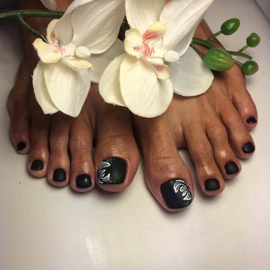 - Pédicure noire avec dessin