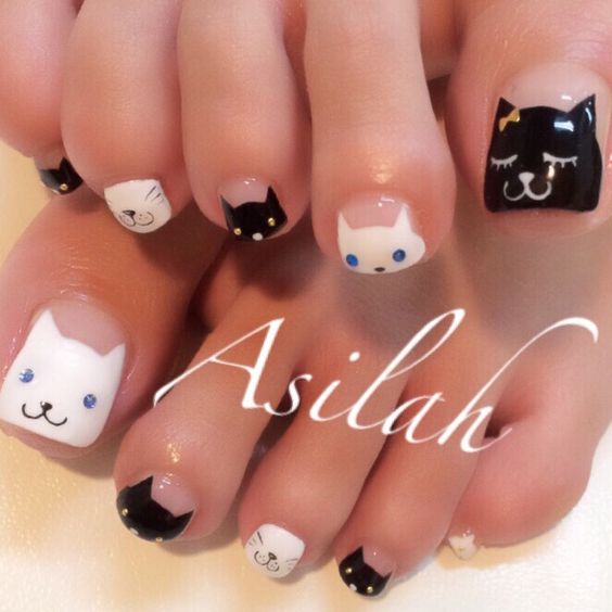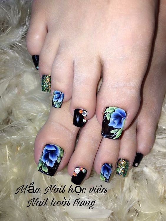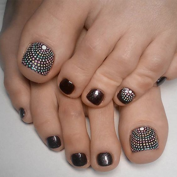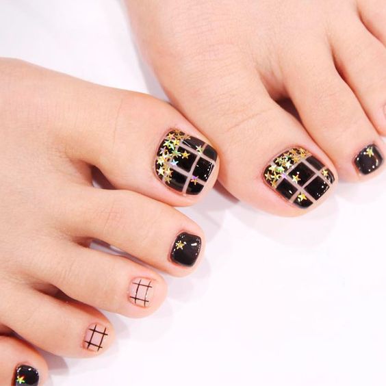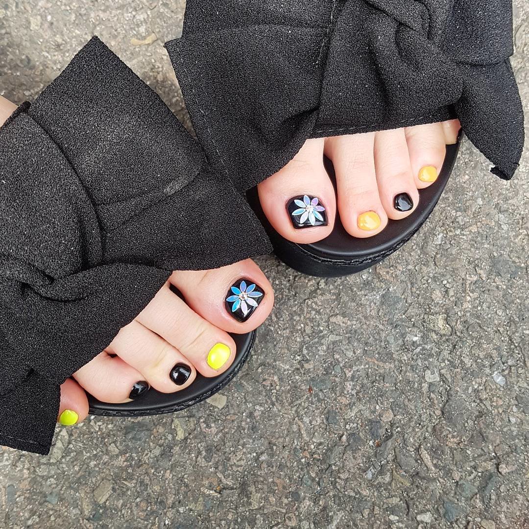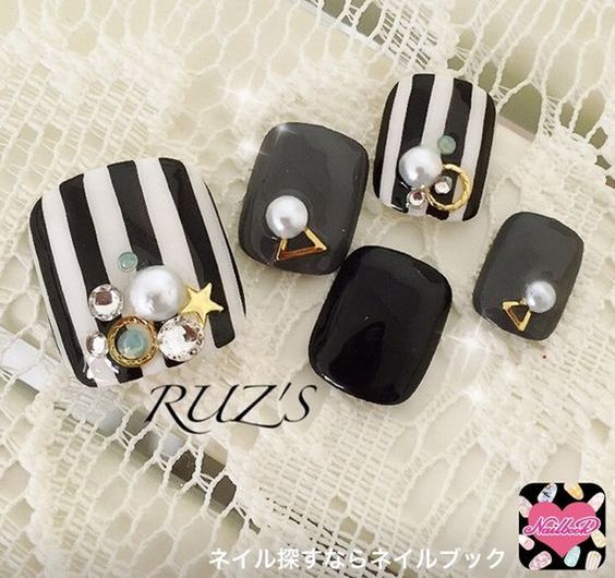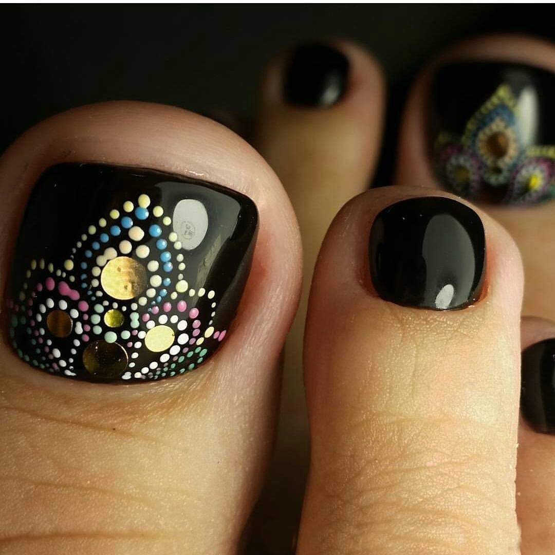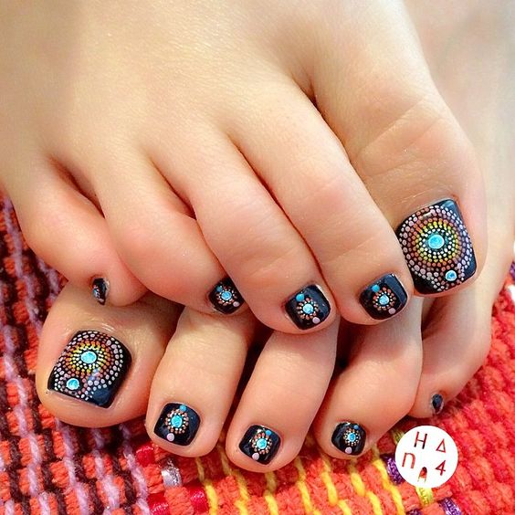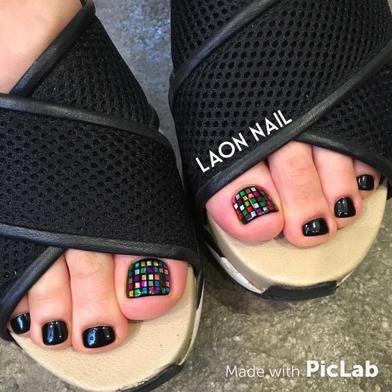 - Pédicure noire avec dessin
