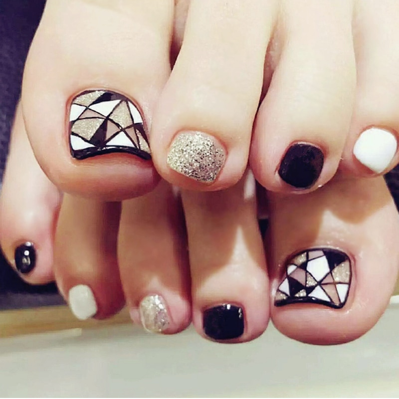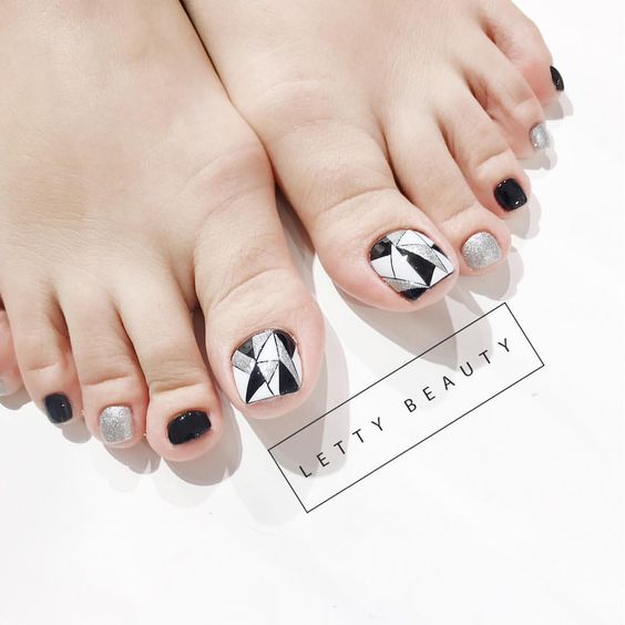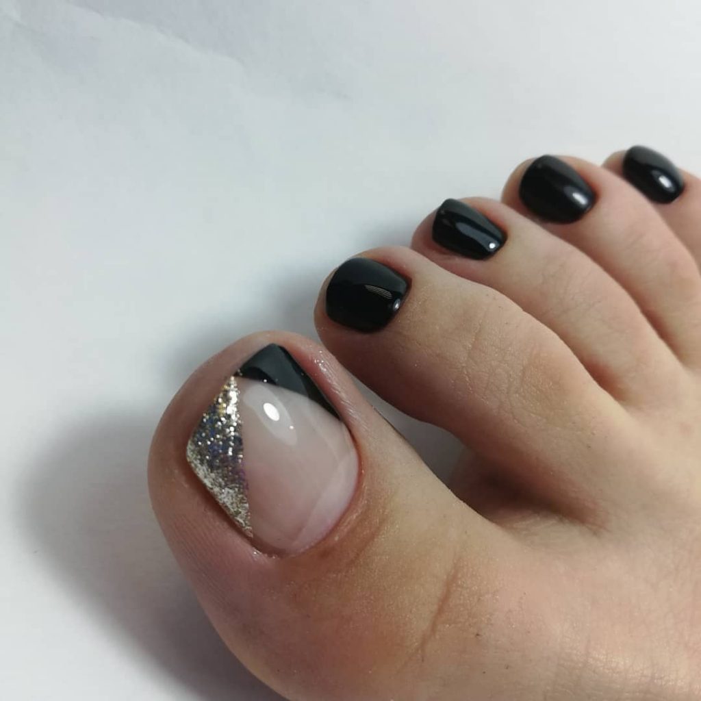 2026 ravit toutes les femmes avec ses nouveaux produits et tendances. Ces nouveaux produits n'ont pas contourné les pédicures. La tendance de l’année a été la pédicure noire, combinée à des teintes différentes. Par exemple, la vignette est recouverte de vernis beige ou rouge et un trou noir est fait à la base de l’ongle. Les ongles restants sont recouverts de vernis noir. Il est également à la mode de faire une pédicure noire en 2026, où une ligne restrictive de connexions de bleu et de noir est faite sur le pouce. La couleur bleue peut remplir le clou sans nom. La ligne est généralement blanche ou argentée. Mais le plus original et le plus populaire était l’option de design, réalisée dans le style des formes géométriques. Cet ornement est situé sur la vignette, car il y a plus d'espace pour la photo. Vernis ou peintures blanches, noires et beiges, les triangles sont disposés dans un ordre chaotique. Les ongles restants sont recouverts de noir.