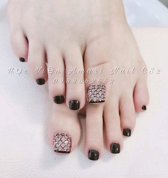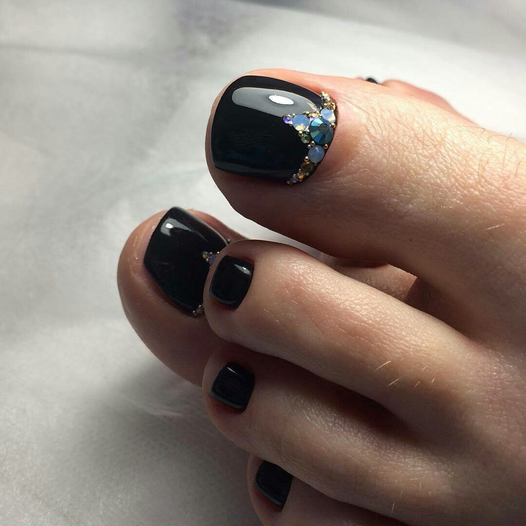 - Pédicure noire avec strass