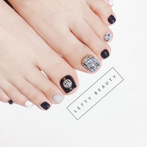 La combinaison d'un pédicure noir avec une teinte blanche