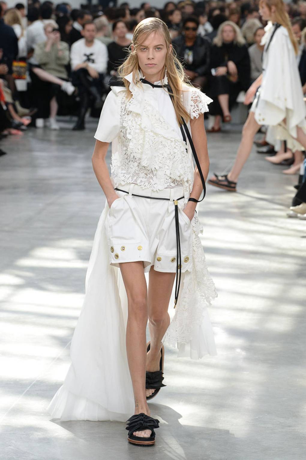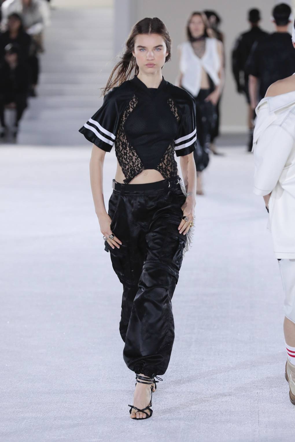 Des chemisiers, des robes, des jupes et même des pantalons avec des éléments en dentelle ont été vus pour la première fois sur le podium lors des défilés de collections de croisières et étaient uniquement destinés au voyage. Mais après seulement quelques mois, la dentelle dans les vêtements a commencé à apparaître dans les collections de créateurs tels que Christopher Kane, Victoria Beckham et Erdem. Au printemps 2026, la dentelle apparaît non seulement sur les robes de style romantique ou professionnel, mais aussi sur les vêtements de sport. Mais ce n’est pas tout: un costume de pantalon de travail peut également être fait de dentelle délicate et élégante. Une combinaison de sport avec des éléments de dentelle élégante semble très inhabituelle et fraîche.