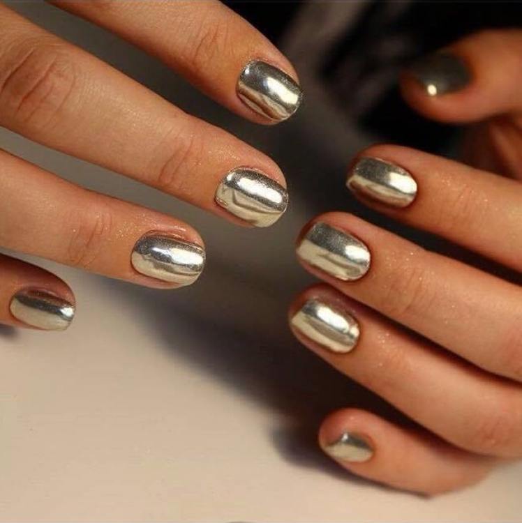 L'application sur les ongles de laque miroitante crée un effet étonnant. À première vue, quelqu'un peut dire qu'une telle manucure n'est pas acceptable au travail, mais les concepteurs recommandent en 2026 de s'éloigner des normes et des stéréotypes. Bien sûr, la manucure en gomme laque la plus populaire parmi les femmes d’affaires est simple et convient à une tenue de bureau. Un revêtement métallique monophonique en nacre répond également à ce critère.Une telle manucure à effet métallisé convient à une femme d’affaires audacieuse et résolue.