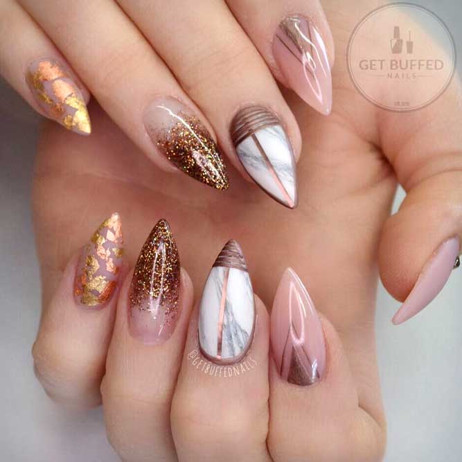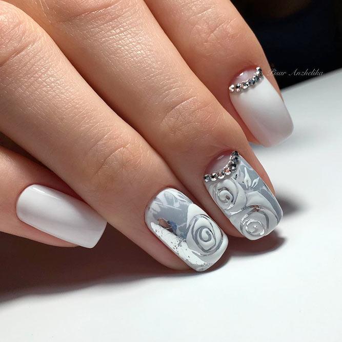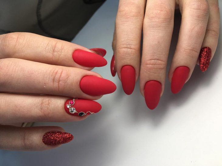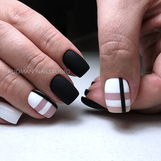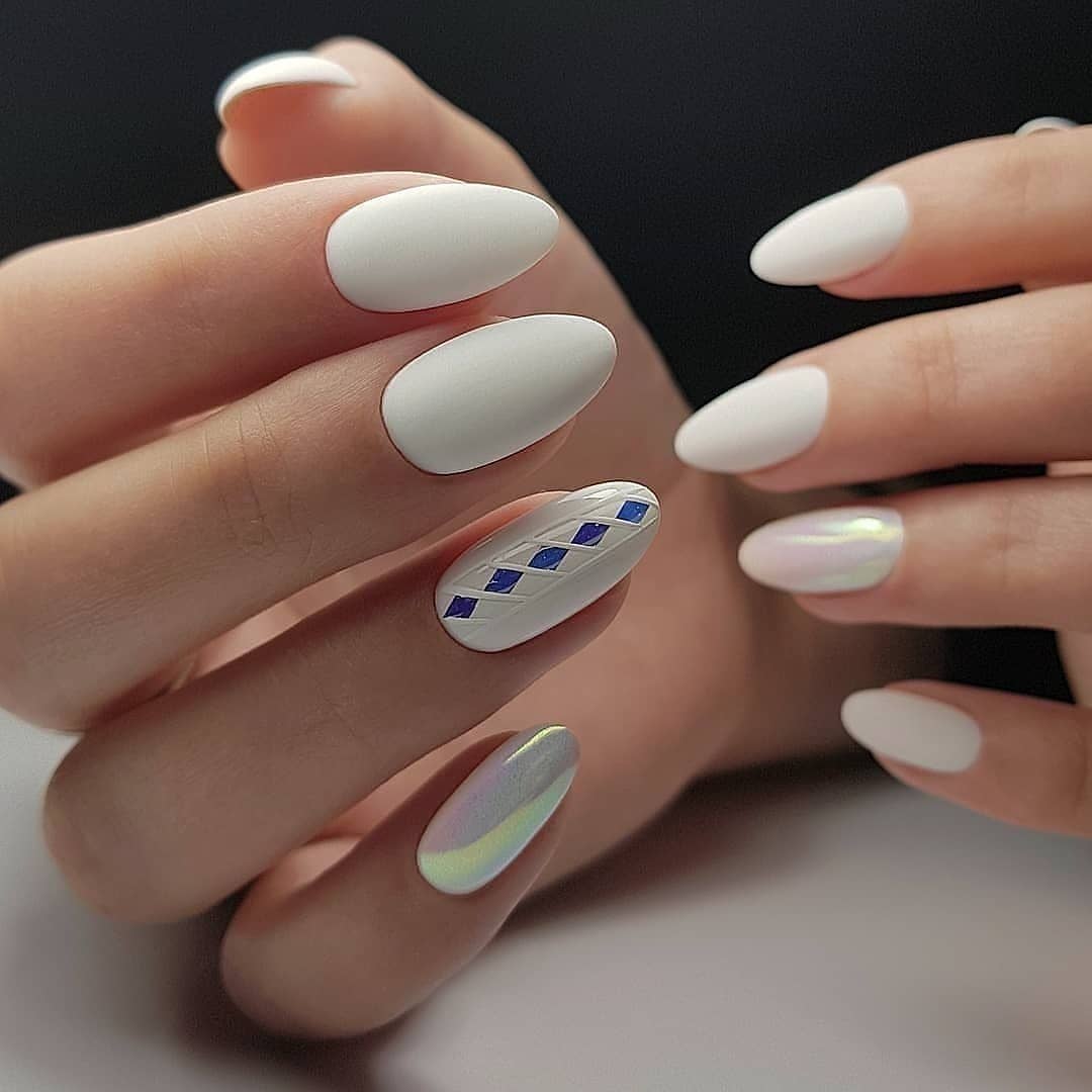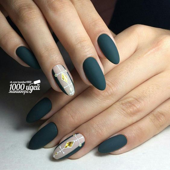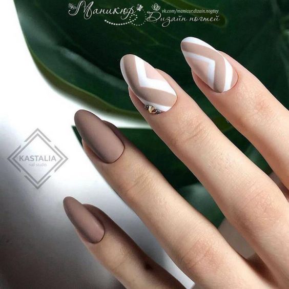 Le ton mat a été populaire pendant plusieurs années. Il donne facilement de la rigueur aux ongles, tout en mettant en valeur la féminité et la sophistication. Si vous le combinez avec une finition brillante, en ajoutant des pierres de strass ou irisées, ce sera l'idée parfaite à la mode pour un style professionnel. Pour une telle manucure, vous pouvez choisir à la fois des couleurs sombres et des couleurs plus claires. En effet, dans un design mat, toutes les couleurs de la gomme laque auront l’air sobres, élégantes et strictes.
