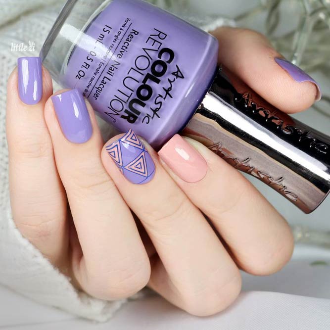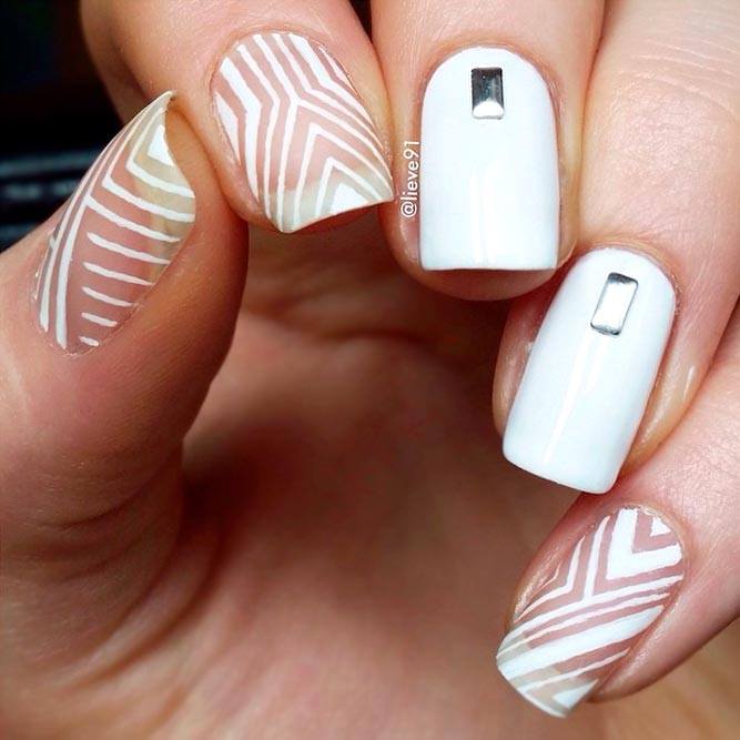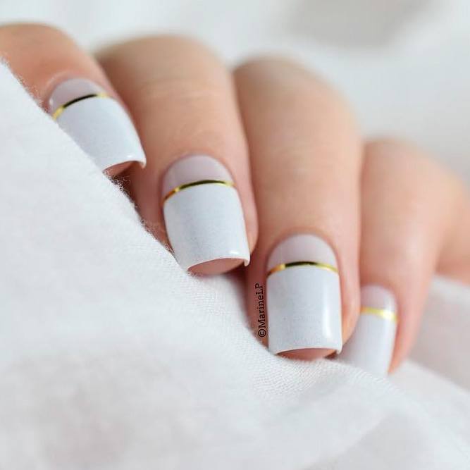 La manucure géométrique Shellac est une option idéale pour les manucures de bureau. Ce look est l’un des designs les plus recherchés et les plus stylés de cette année. Sur les ongles, vous pouvez représenter des losanges, des triangles, des pois, une cage et également diviser l’ongle en segments même ou complètement différents. Vous pouvez faire des lignes droites et ondulées en les plaçant horizontalement, verticalement ou en diagonale. Chaque élément se distingue par la gomme laque d'une certaine couleur ou structure. En ajoutant un ruban spécial à la manucure géométrique, vous améliorerez non seulement la précision des lignes, mais vous leur donnerez également un accent brillant.