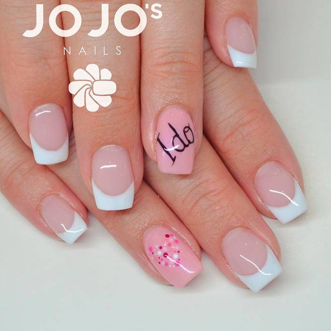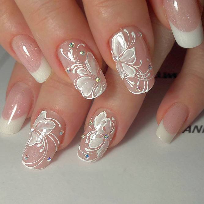 Le français reste toujours un classique, à la fois dans les affaires et dans la manucure quotidienne. Lui, pas comme les autres, est le plus approprié pour le style de bureau. Si vous êtes fatigué d'un sourire blanc ennuyé, vous pouvez facilement diversifier votre manucure en ajoutant des strass, des motifs, des motifs ou des bouillons. Par exemple, le décor se fait à l'anneau ou à l'index. Une des dernières tendances populaires de cette année est l’emplacement d’un sourire spectaculaire, non pas sur le bout des ongles comme d’habitude, mais sur le côté. C'est cette innovation qui est considérée comme l'élément principal de la manucure de 2026.