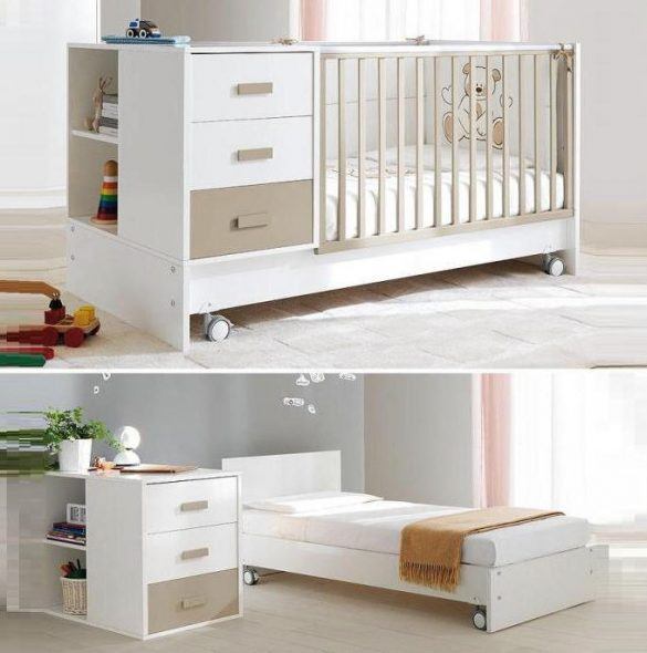 Cette option est choisie par les parents qui ne veulent pas acheter un nouveau lit tous les 2-3 ans. Le transformateur peut grandir avec le bébé. Au fur et à mesure que l'enfant grandit, il s'écarte et s'allonge. Ainsi, un lit peut durer de la naissance jusqu'à presque l'adolescence.