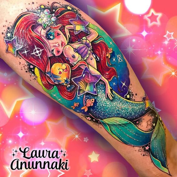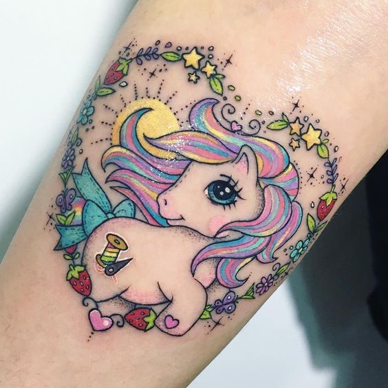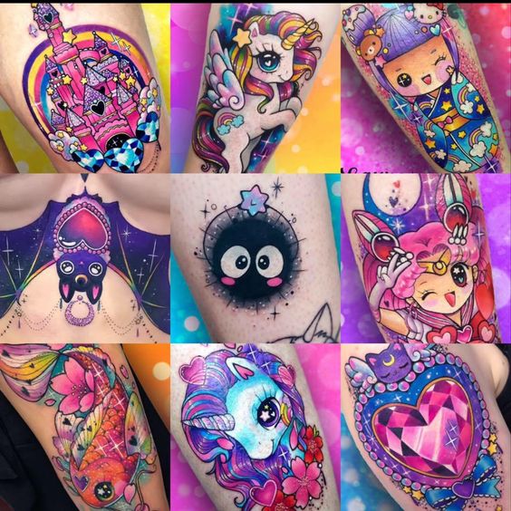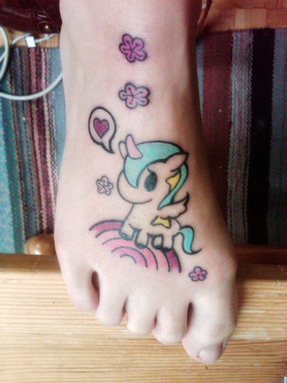 Comment se passer des personnages de contes de fées modernes? Le tatouage de héros comme une licorne, une princesse, une petite sirène ou une gentille sorcière plaira certainement à une belle demoiselle.