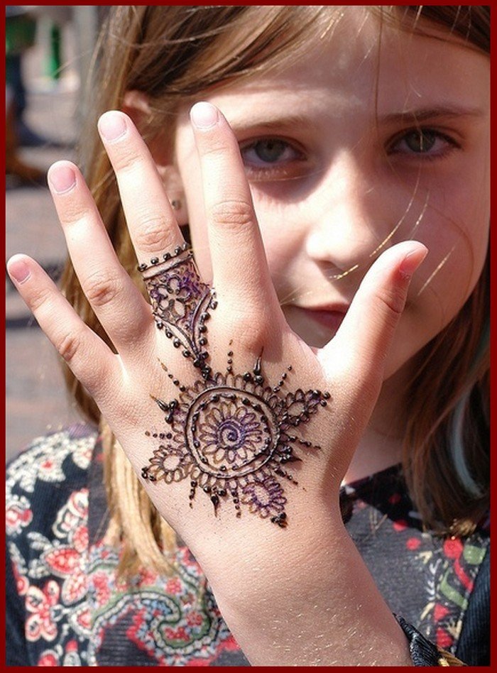 Les enfants modernes veulent se démarquer de la foule et montrer leur individualité. Pendant plusieurs années, au sommet de la popularité chez les enfants, la décoration du corps du mehendi est une sorte de dessin au henné. Des ornements complexes originaux de différents sujets décoreront parfaitement le corps de l’enfant, et un tel dessin durera plus d’une semaine.