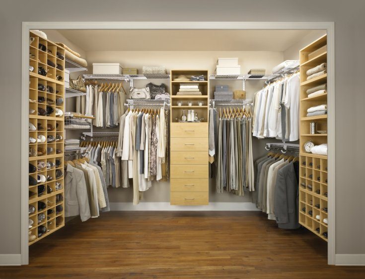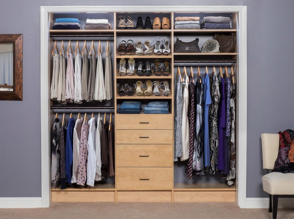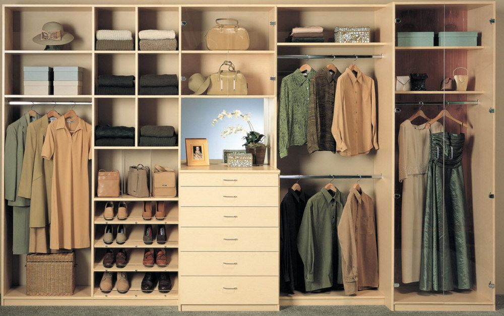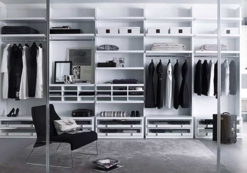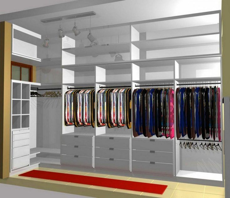 Les systèmes de stockage peuvent être achetés ou fabriqués indépendamment. Pour que toutes les choses soient bien placées, vous devez calculer le nombre et la taille des compartiments requis. Par exemple, pour les femmes, il est important que la hauteur des cintres permette de ranger ici ses robes, y compris celles qui sont longues. Par conséquent, ils doivent être au moins de 1,8 mètre, 1,2 mètre suffit pour le stockage des vestes pour hommes, la largeur des étagères ne doit pas dépasser 30 à 35 cm, la largeur des épaules pouvant affecter la profondeur de l'armoire. Par conséquent, il est généralement égal à 50-70 cm.
