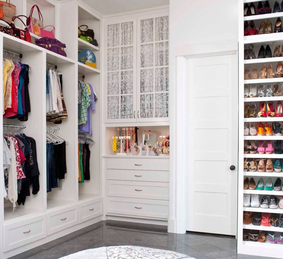 Il y a plusieurs options de disposition pour le vestiaire. Tous dépendent de la quantité d'espace libre à l'intérieur, des portes et des fenêtres, ainsi que des préférences personnelles des propriétaires de la maison. Chaque configuration a ses propres caractéristiques et convient à un certain type de pièce.