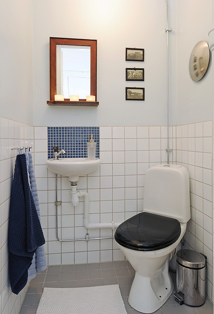 Un espace supplémentaire donnera à la petite toilette un plancher en vrac qui ressemble à du brillant. 6 ou 8 carreaux de céramique au charbon avec un petit motif seront l’option idéale pour finir le sol dans une petite toilette. Évitez les ornements volumineux et les grands motifs qui réduisent visuellement la toilette.