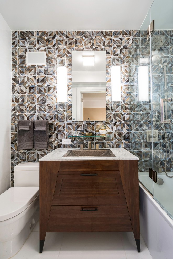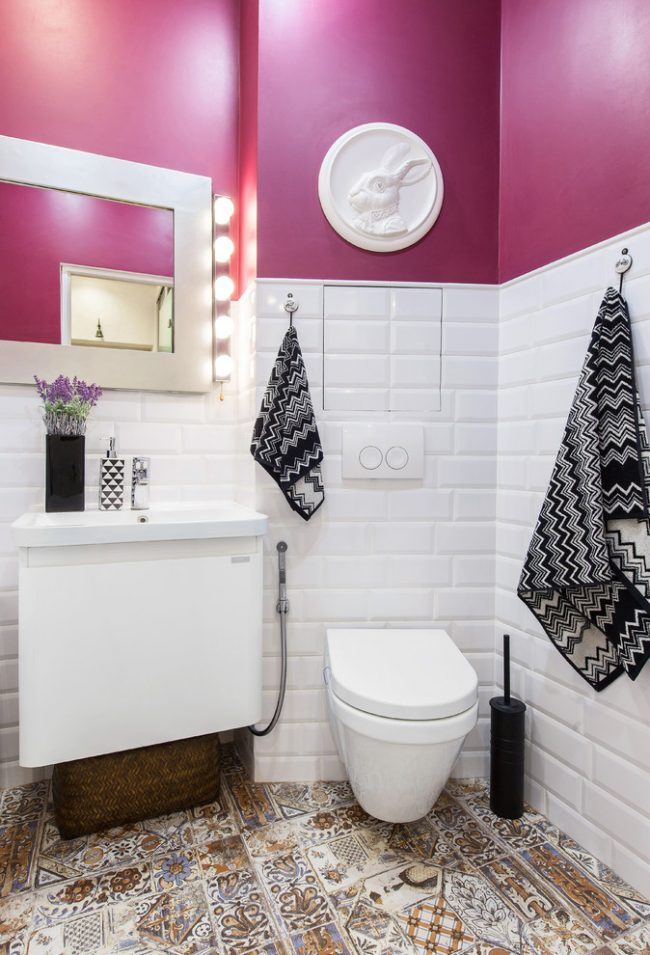 Les erreurs les plus courantes lors de la création d'un dessin de petite toilette sont l'absence d'équilibre général, une abondance de décor et une palette de couleurs très vive. Nous examinerons ci-dessous les instructions de style qui s’intègrent harmonieusement dans une petite zone de la pièce.