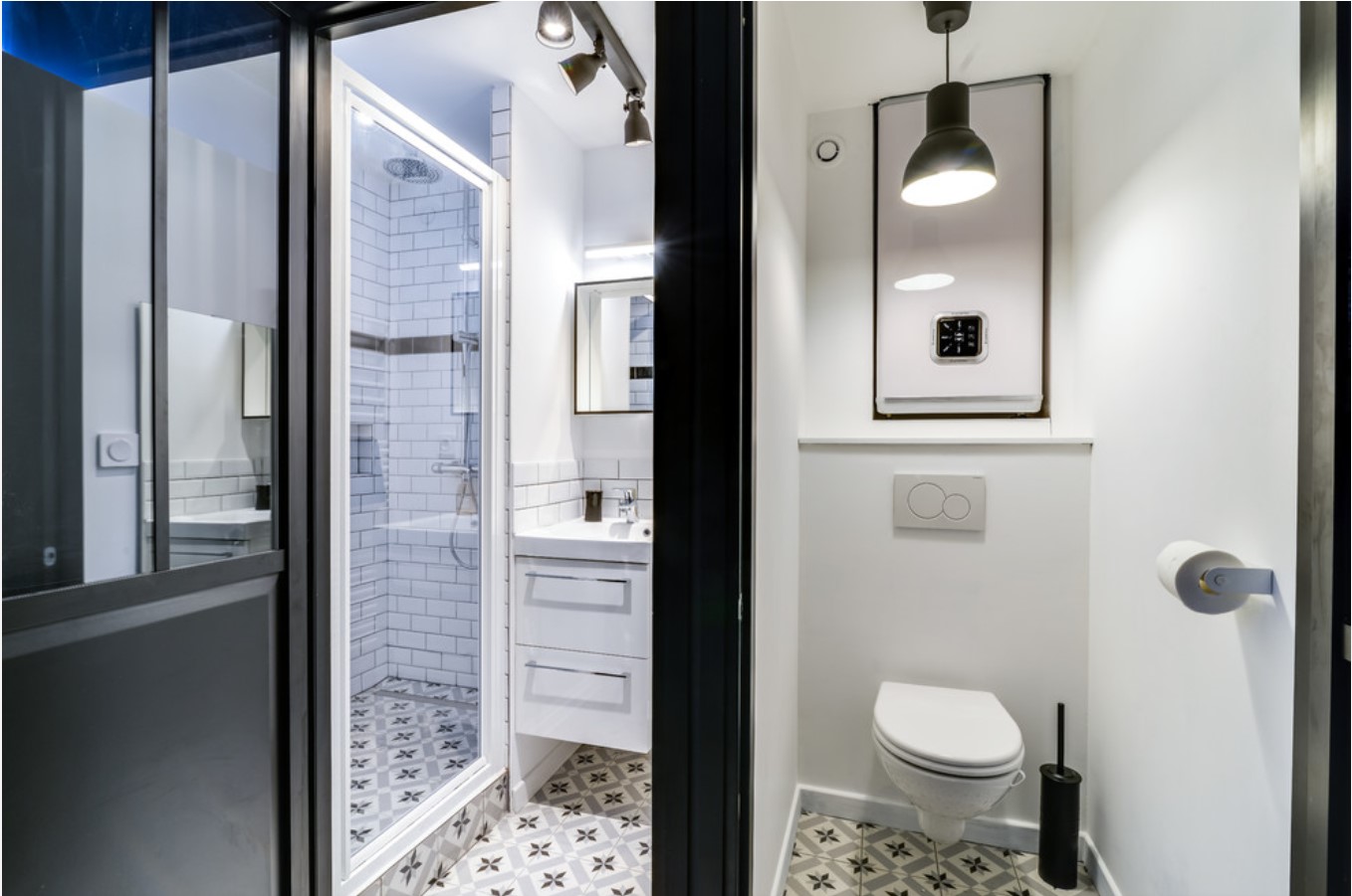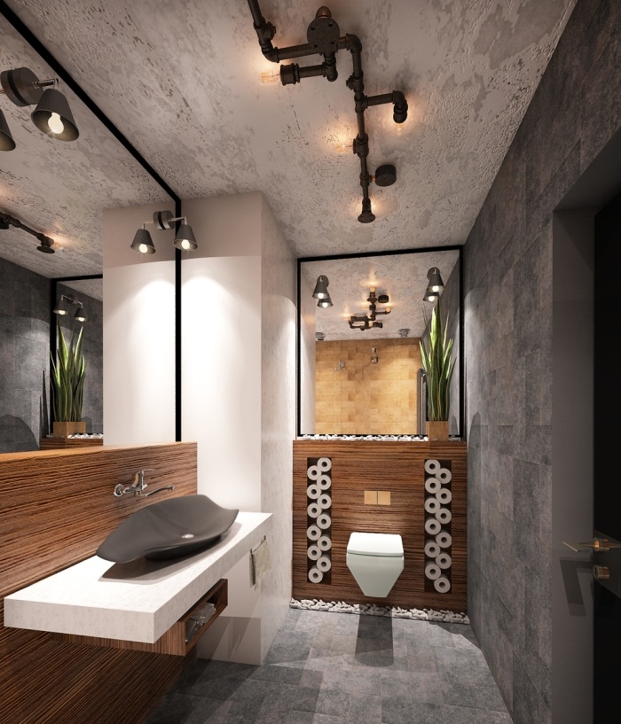 Style loft dans une petite toilette