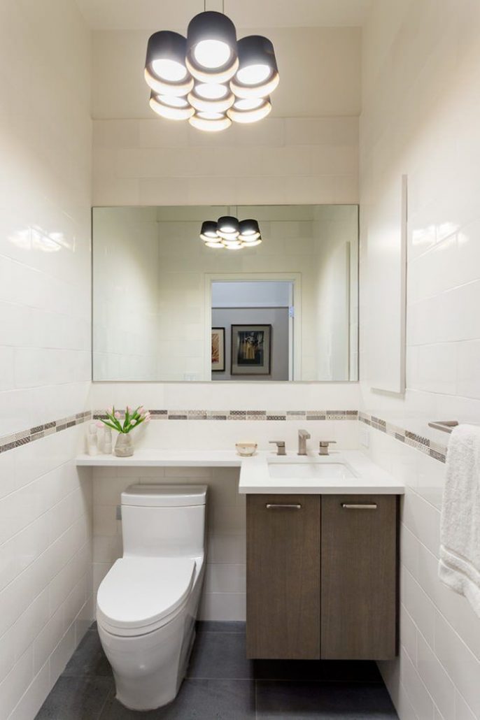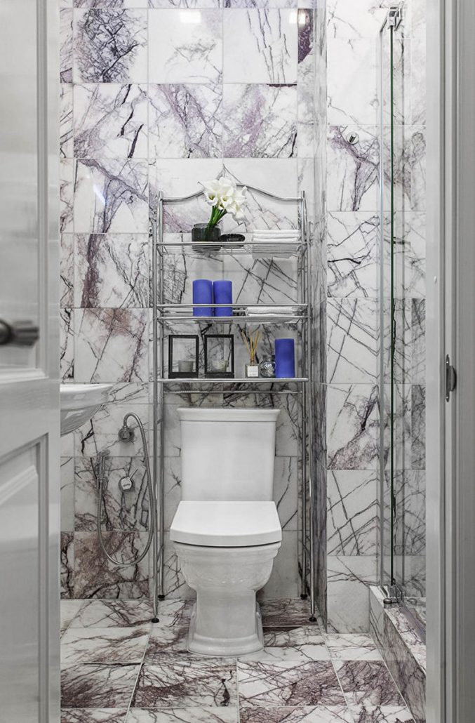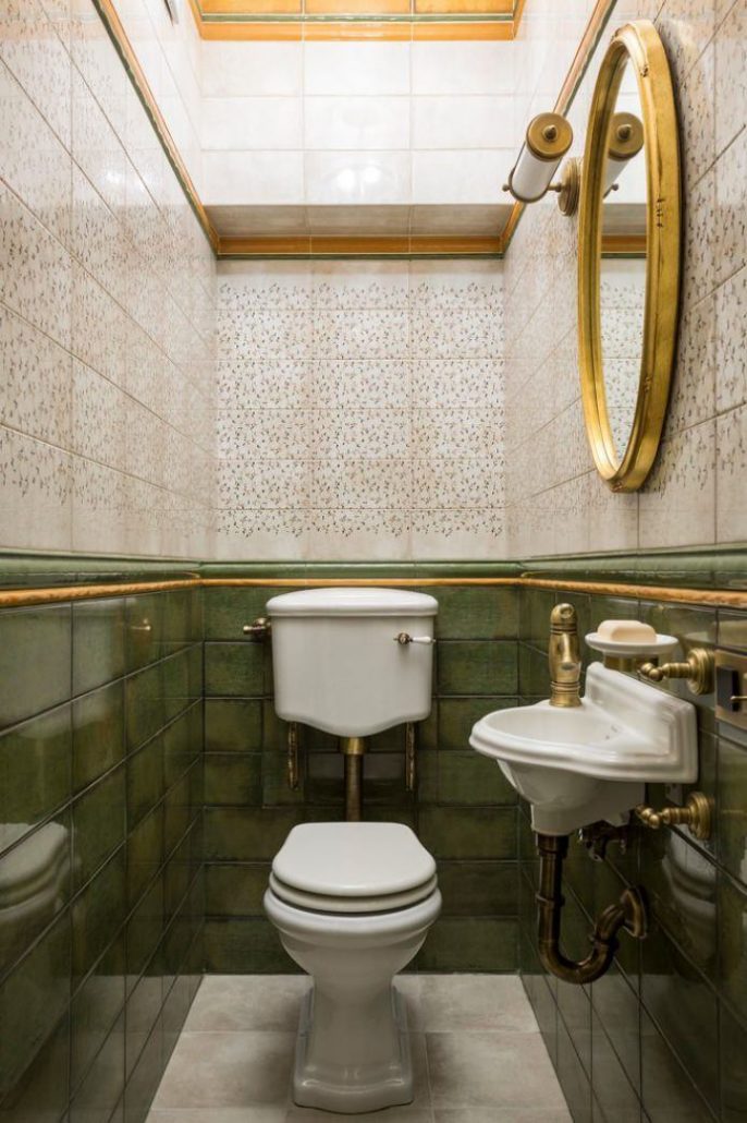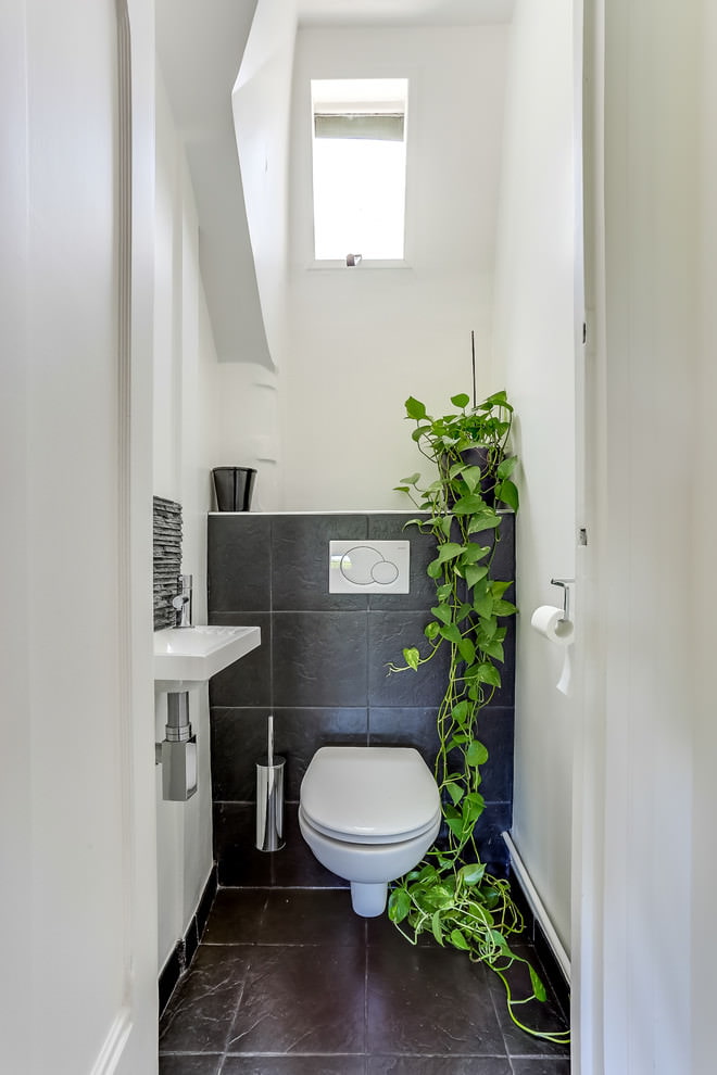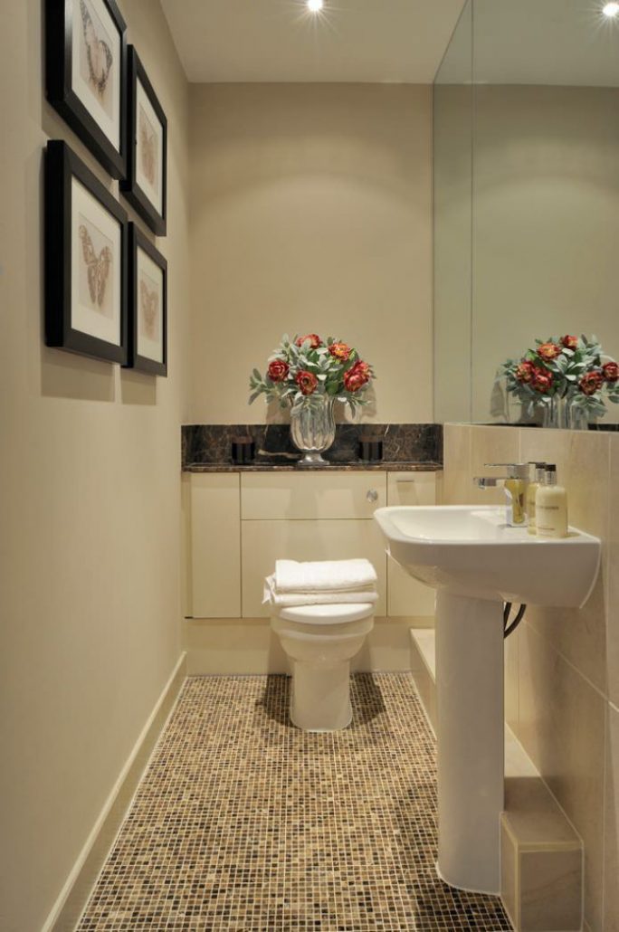 Un espace supplémentaire donnera à la petite toilette un plancher en vrac qui ressemble à du brillant. 6 ou 8 carreaux de céramique au charbon avec un petit motif seront l’option idéale pour finir le sol dans une petite toilette. Évitez les ornements volumineux et les grands motifs qui réduisent visuellement la toilette.