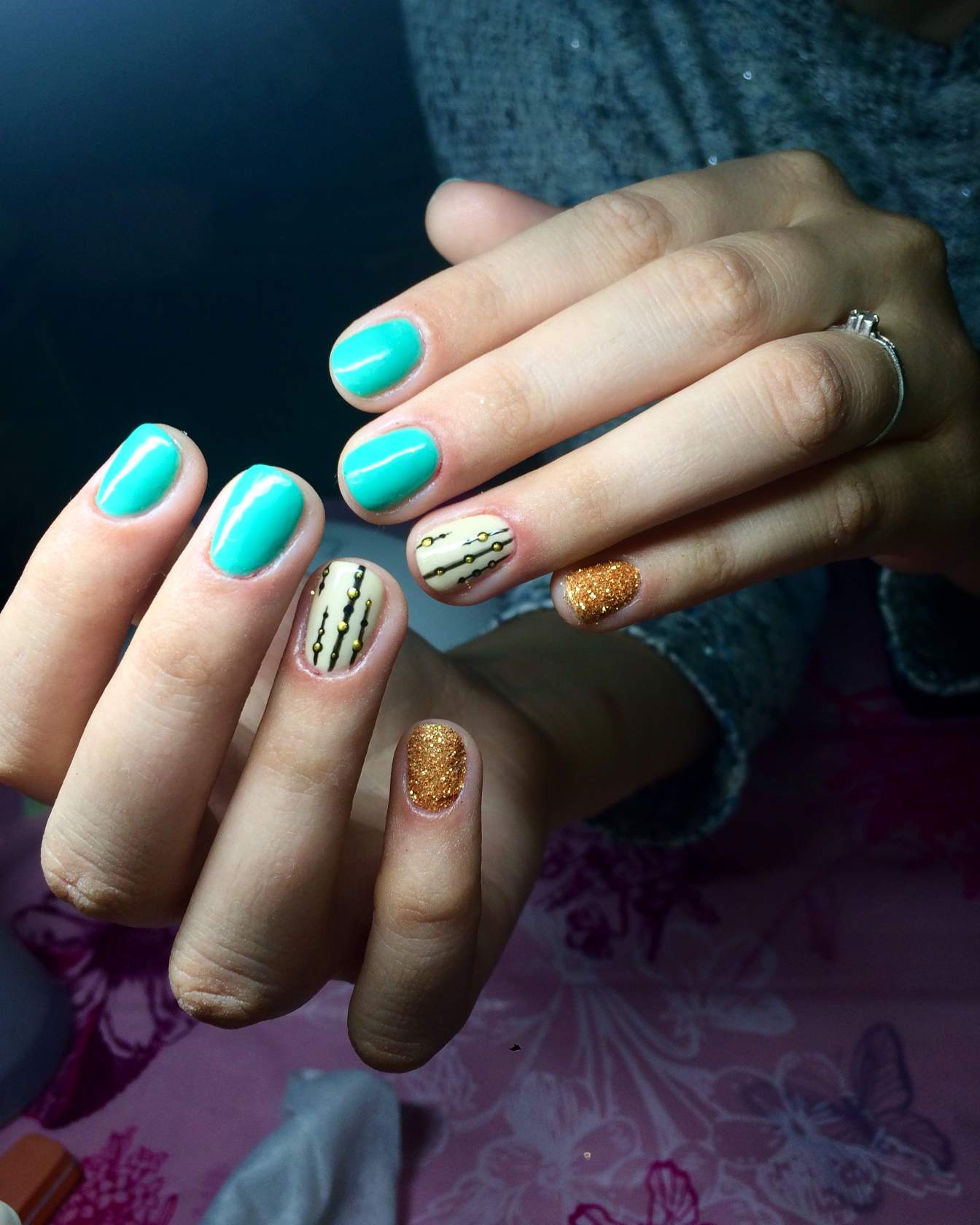 Variations de manucure bleu-vert