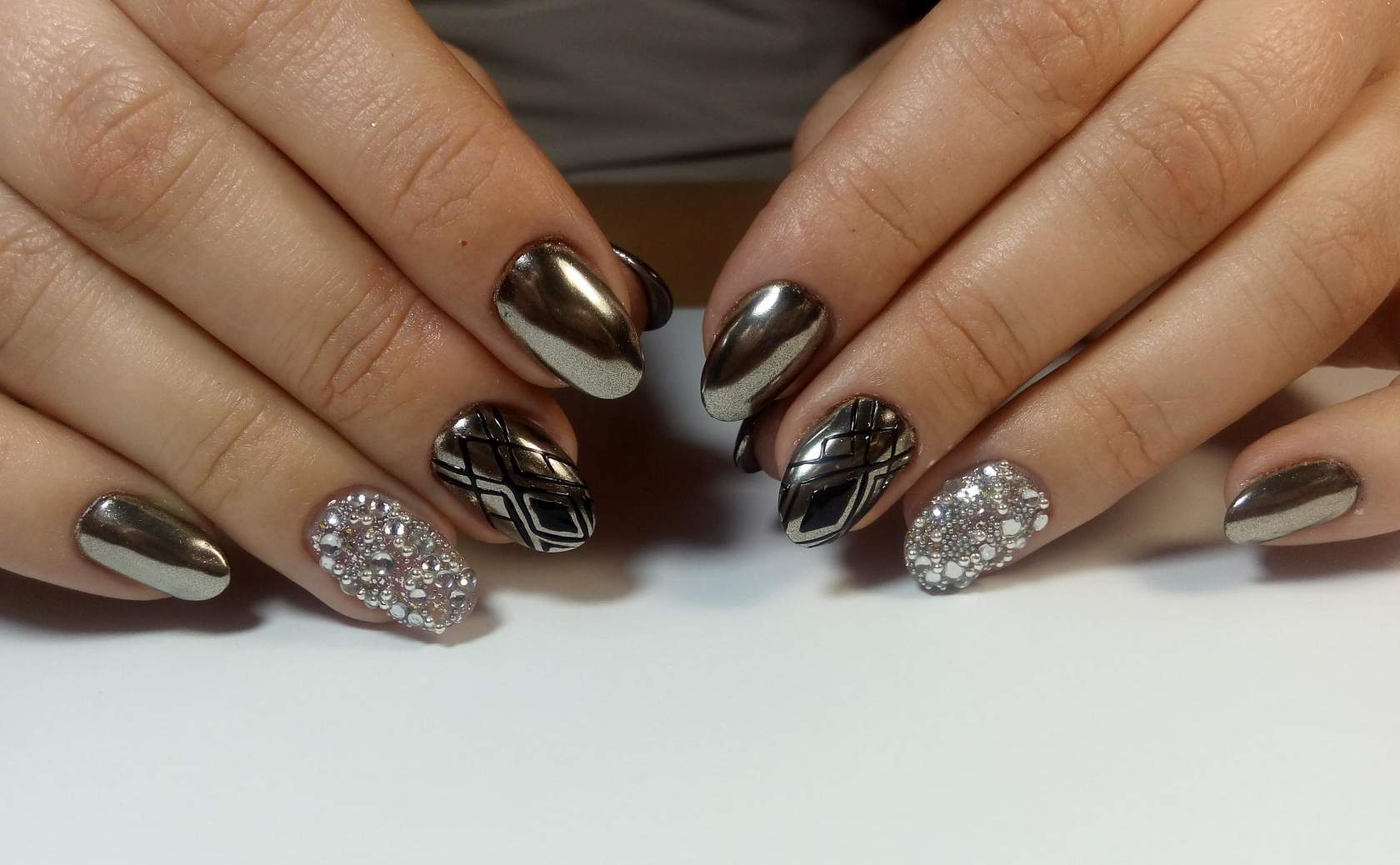 Nul doute que le noir et blanc reste en vogue au printemps 2026. Un classique indéniable. La combinaison de deux couleurs opposées est exprimée dans une manucure spectaculaire, complétée par un éclat métallisé argenté, qui souligne encore plus la beauté et la grâce du nail art en noir et blanc. Les beaux ornements noirs et blancs sur la plaque à ongles conviennent tout à fait aux vêtements de tout style.