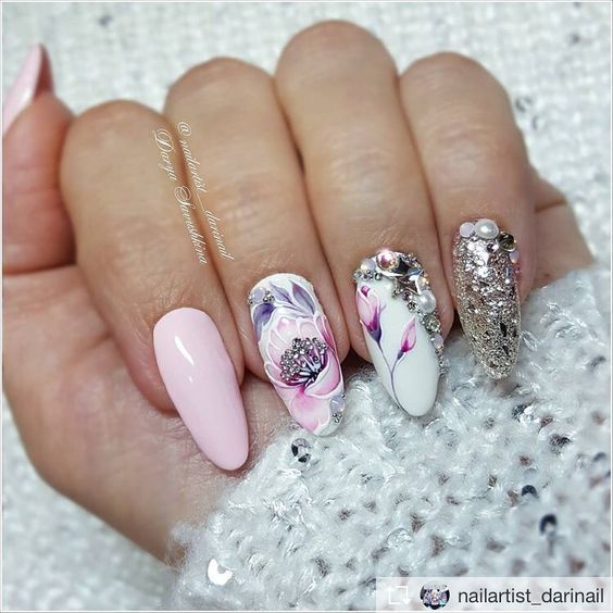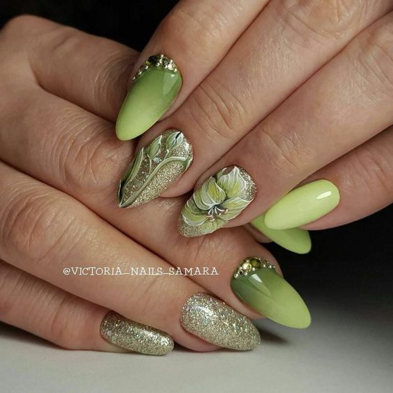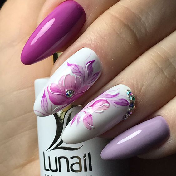Grâce à toutes sortes de techniques de nail art, vous pouvez réaliser une manucure printanière merveilleuse pour toute longueur d'ongle. En outre, le vernis en gel convient à toute forme de plaque à ongles. Il n’ya pas de limite à l’imagination pour choisir une telle manucure, car il peut réaliser vos idées les plus originales. Au printemps, la gamme de couleurs de vernis gel peut battre toutes les humeurs. Des motifs géométriques au sommet de la popularité. Au printemps, une option gagnant-gagnant est une manucure pour polir le gel assortie qui combine plusieurs techniques de conception. Ce n’est qu’au printemps qu’il devient possible de combiner des motifs différents et de jouer avec le jeu de couleurs en combinant différentes textures.